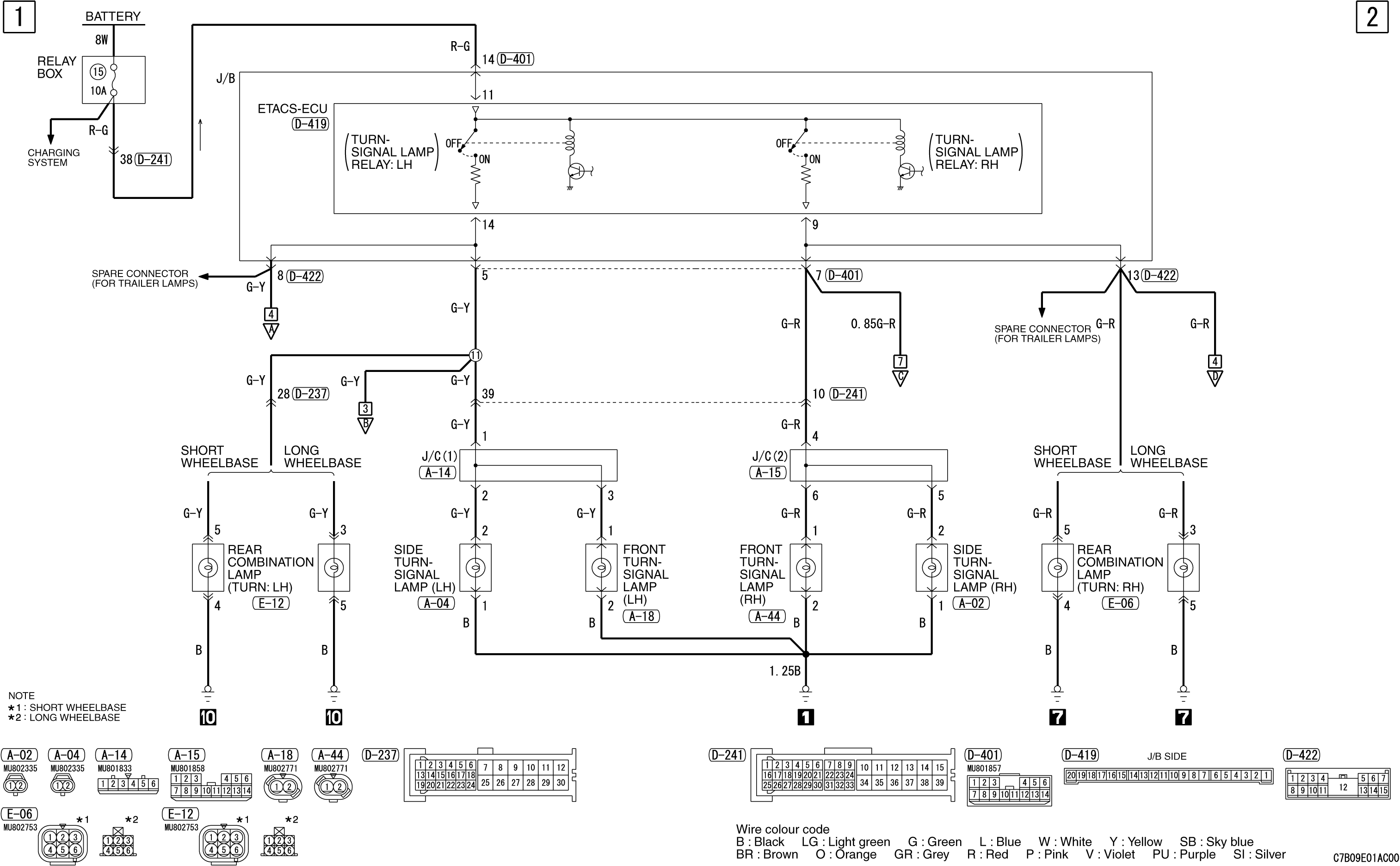 Прошу помочь. Очень нужна схема электрическая принципиальная цепи от предохранителя №15 (10А) под капотом, отвечающим за аварийку и поворотники, далее блок ETACS (в нем стоит само реле поворотников) ну и все что после.