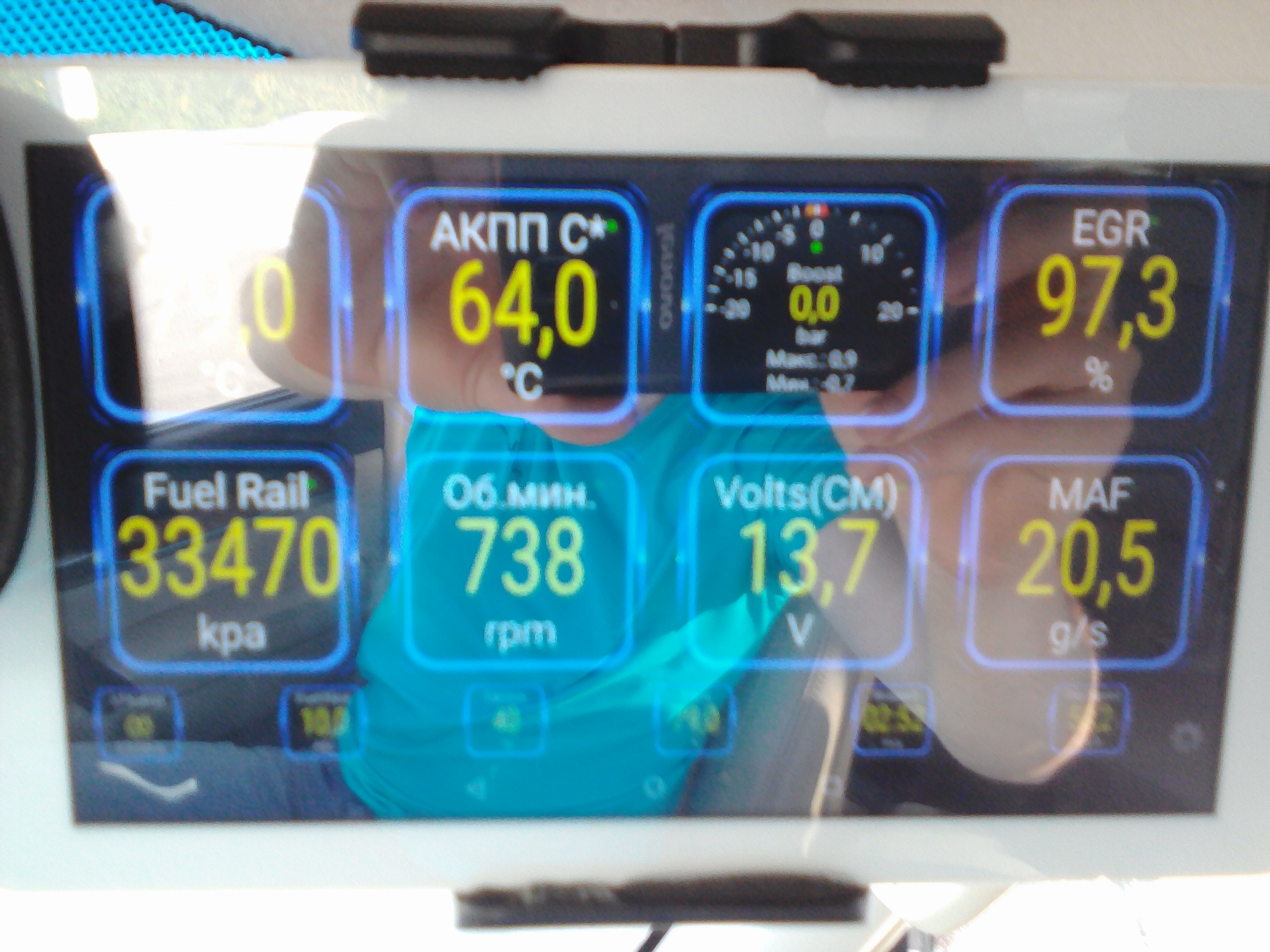 Всех приветствую, нужен совет бывалых людей. Постараюсь описать как можно подробнее свои наблюдения, извините если получится сумбур. Так вот после недавнего перегрева коробки в поле, было решено вывести температуру АКПП, для этого был куплен блютуз ELM327/китайский планшет и программа "Torque Pro", помимо температуры вывел давление в топливной рейке, давление надува, показания MAF(ДМРВ). Так вот смутил меня расход воздуха на холостых около - 20 г/с, при педали в пол выше 180 г/с не поднимается- тут вроде все ок. Связал это с механической заглушкой ЕГР, руки чешутся же б..я, снял заглушку расход упал до 12-13 г/с, оно и понятно, решил прокатиться машина стала немного овощить, но едет. По совету знакомого который на патруле вывел егр в воздухан решил попробывать сделать так же. Из четверки нержавейки выпилил заглушку на егр, времено снял трубу которая соединяет ЕГР и выпускной коллектор что бы егр если и открывался то во впуск шёл "чистый воздух". Завел работает мягче чем с заглушкой, расход воздуха стал примерно 15 г/с., ну думаю ок, завел ЕГР в воздухан перед MAF, какое то время все было ок, но потом расход воздуха стал расти оно бы и х.. с ним, ну руки же чешутся, вывернул MAF, а на капельке которая измеряет температуру воздуха приличный сажевый налет со стороны фильтра, MAF я чистил когда снимал заглушку. И тут начинаем соображать, клапан ЕГР устроен таким образом, что его можно открыть потоком воздуха из впускного коллектора, получается MAF был засран турбиной поскольку сажу из трубки ЕГР чистить не стал уж мало её там было, но достаточно что бы осесть на датчике. Ранее с заглушкой трубина дула полтора бара, сейчас давит максимум 0.9, отсюда следуют вопросы:
