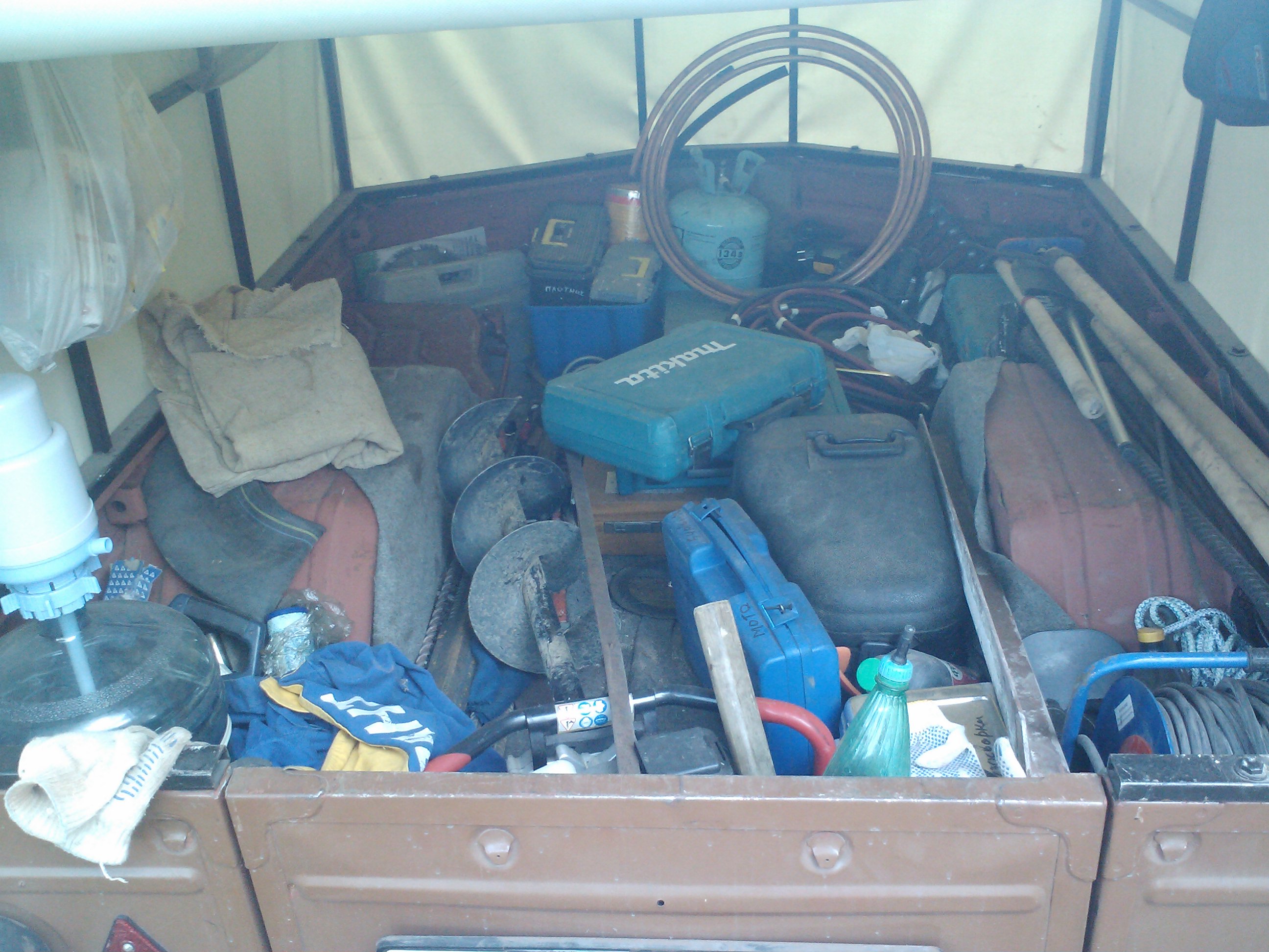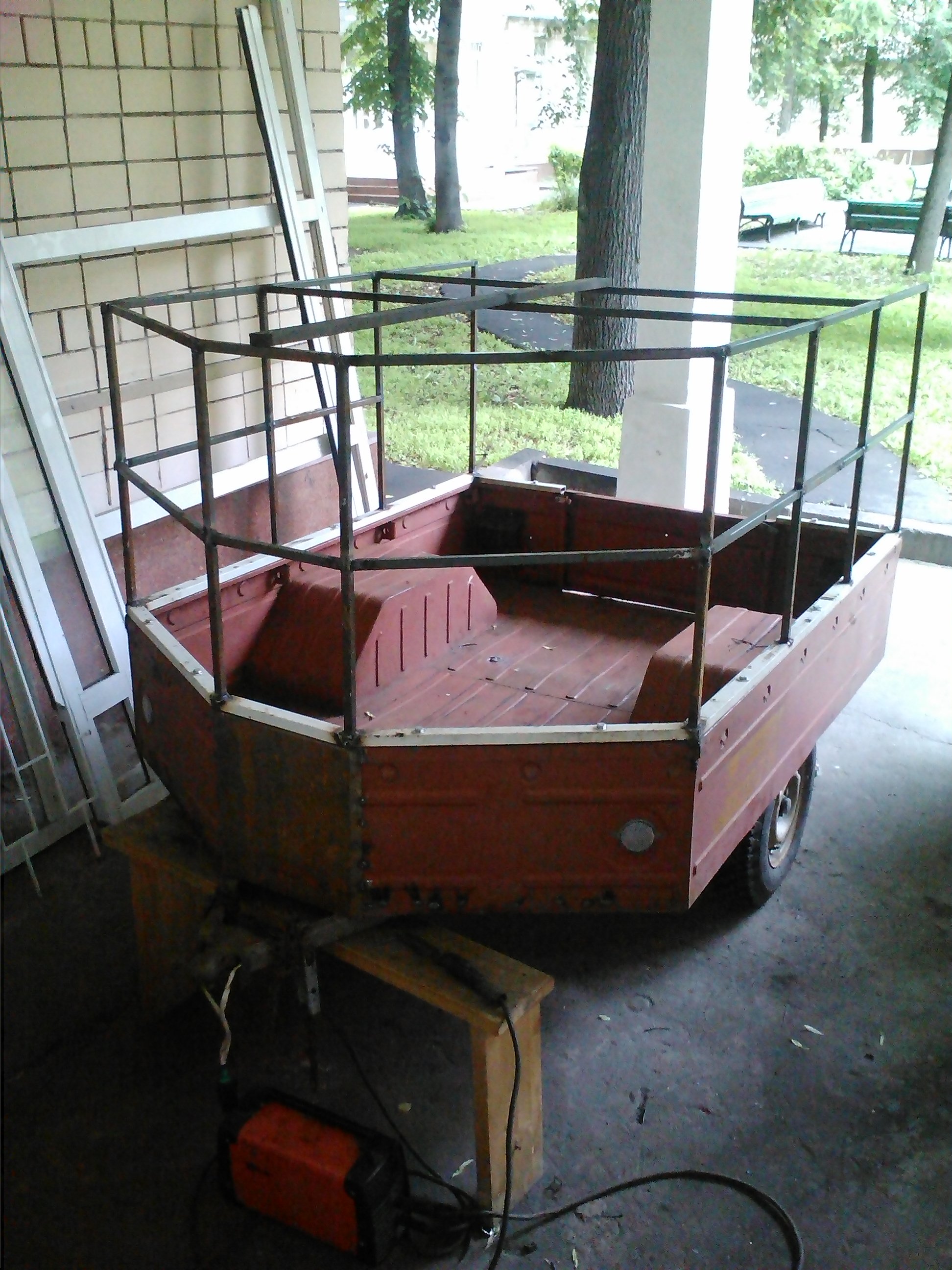 - профильная труба 20х40 на усиление кузова с низу (лежали деревянные бруски) и на низ каркаса + 20х20 на каркас тента, куплены в пункте сбора металлолома за 1200руб
