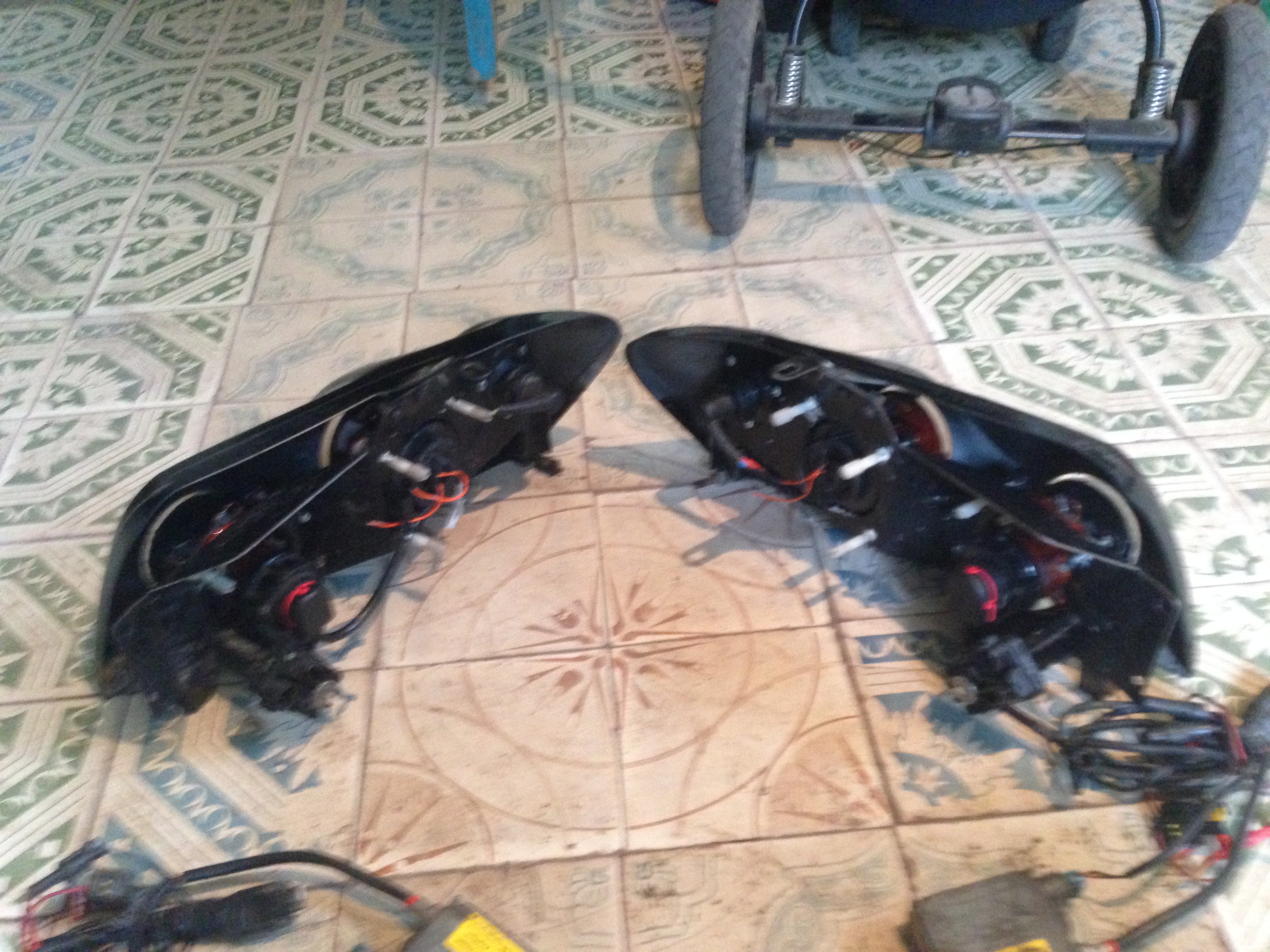 Новые стекла на модулях ближнего и дальнего света, стекла с маркировкой hella и с маркировками ксенона. Новые лампы (установлены и ни разу не включались) d2s на 4100K, новые лампы H7 дальнего света. Маски выкрашены в черный цвет x23d. Модули розжига Hella со всем подключением. Поворотники 50мм
