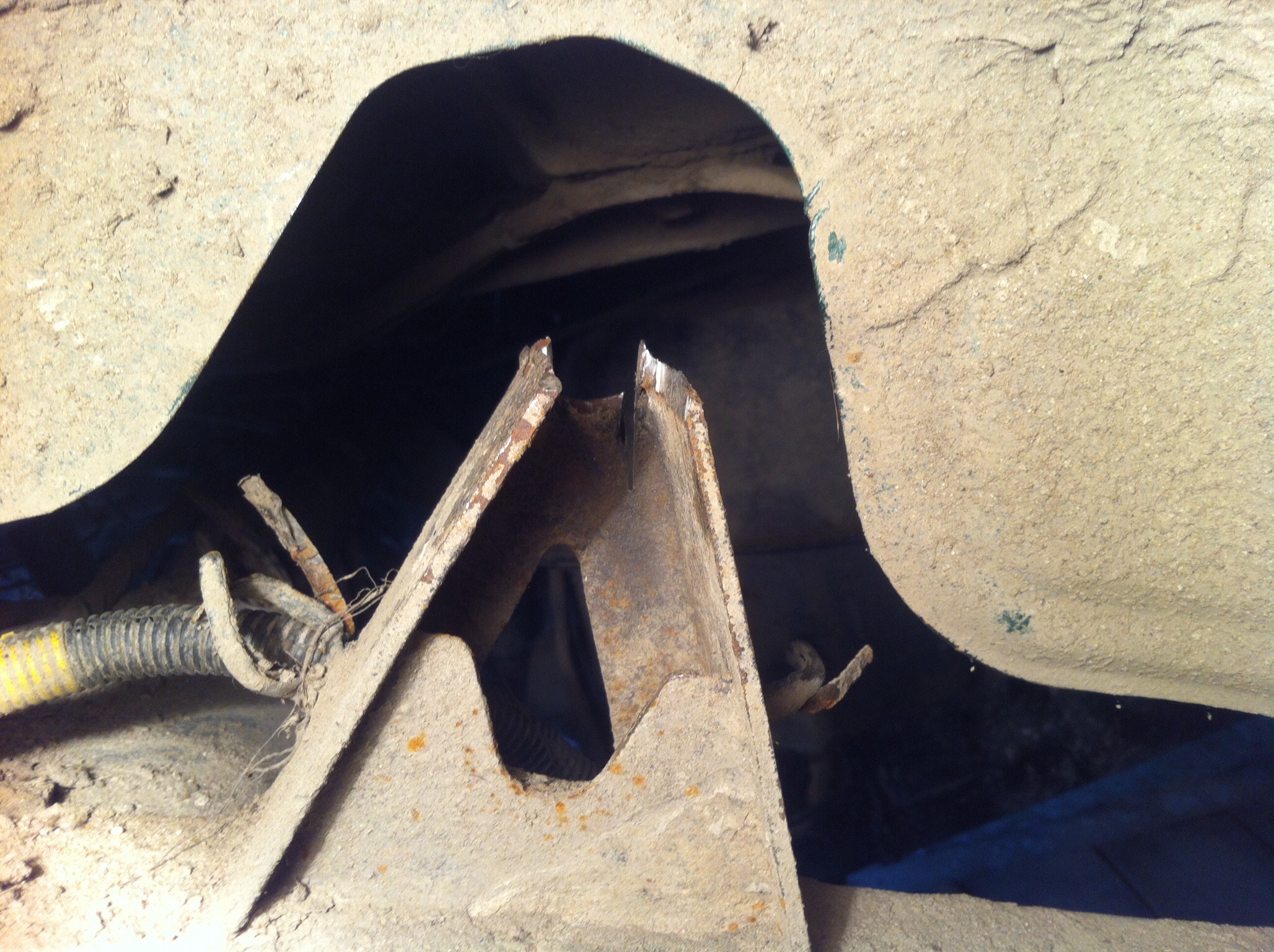 Вот так выглядит обломившаяся шпилька. Болгаркой,сначала с наружной стороны,а потом с внутренней сделал пропилы вдоль этой шпильки. До конца пропилить не удалось,осталось сантиметра полтора не допилено. И это не смотря на бодик 3см.