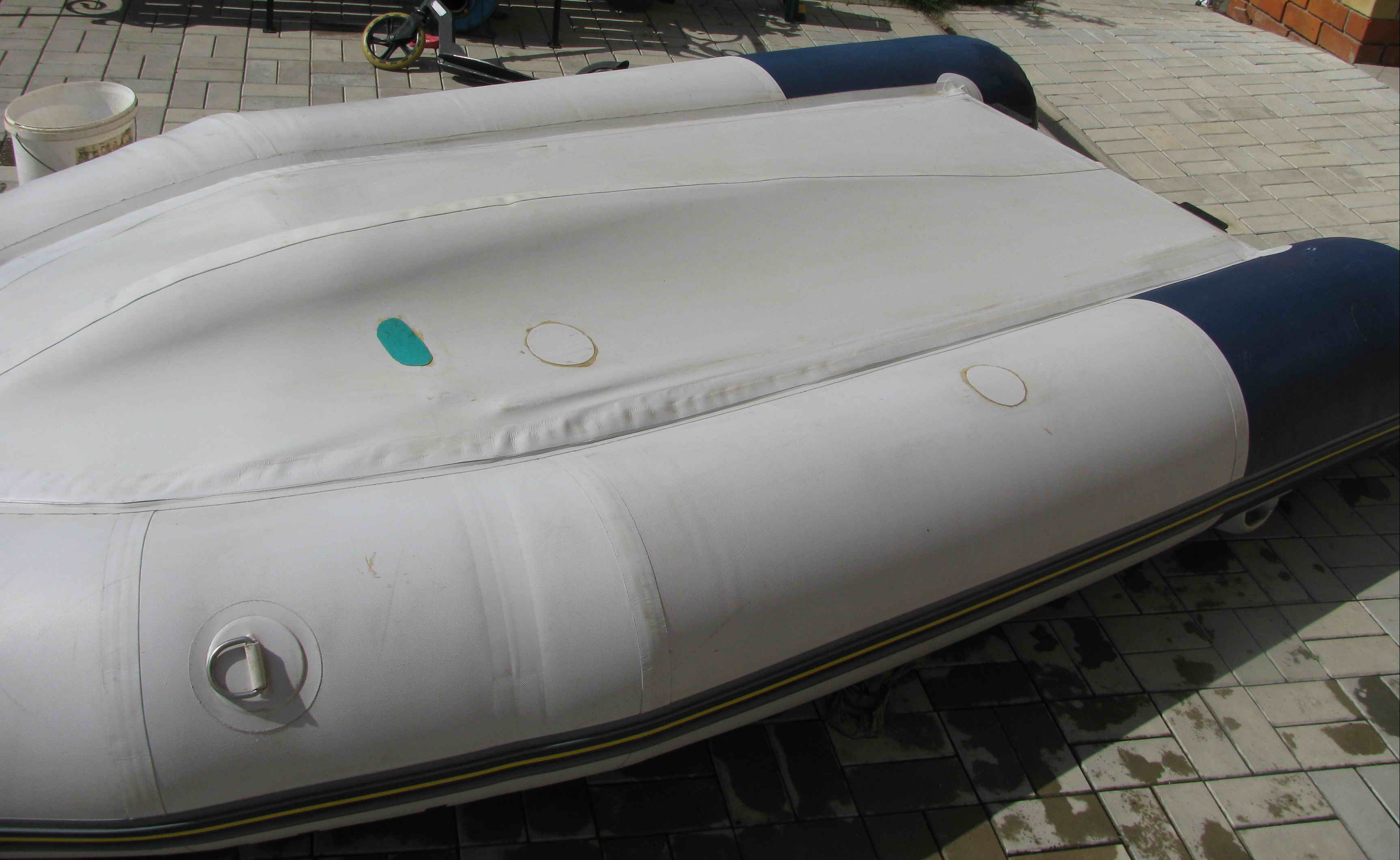 Все что есть из повреждений - на фото - 3 заплатки. Заклеено давно, не травит, не пропускает.