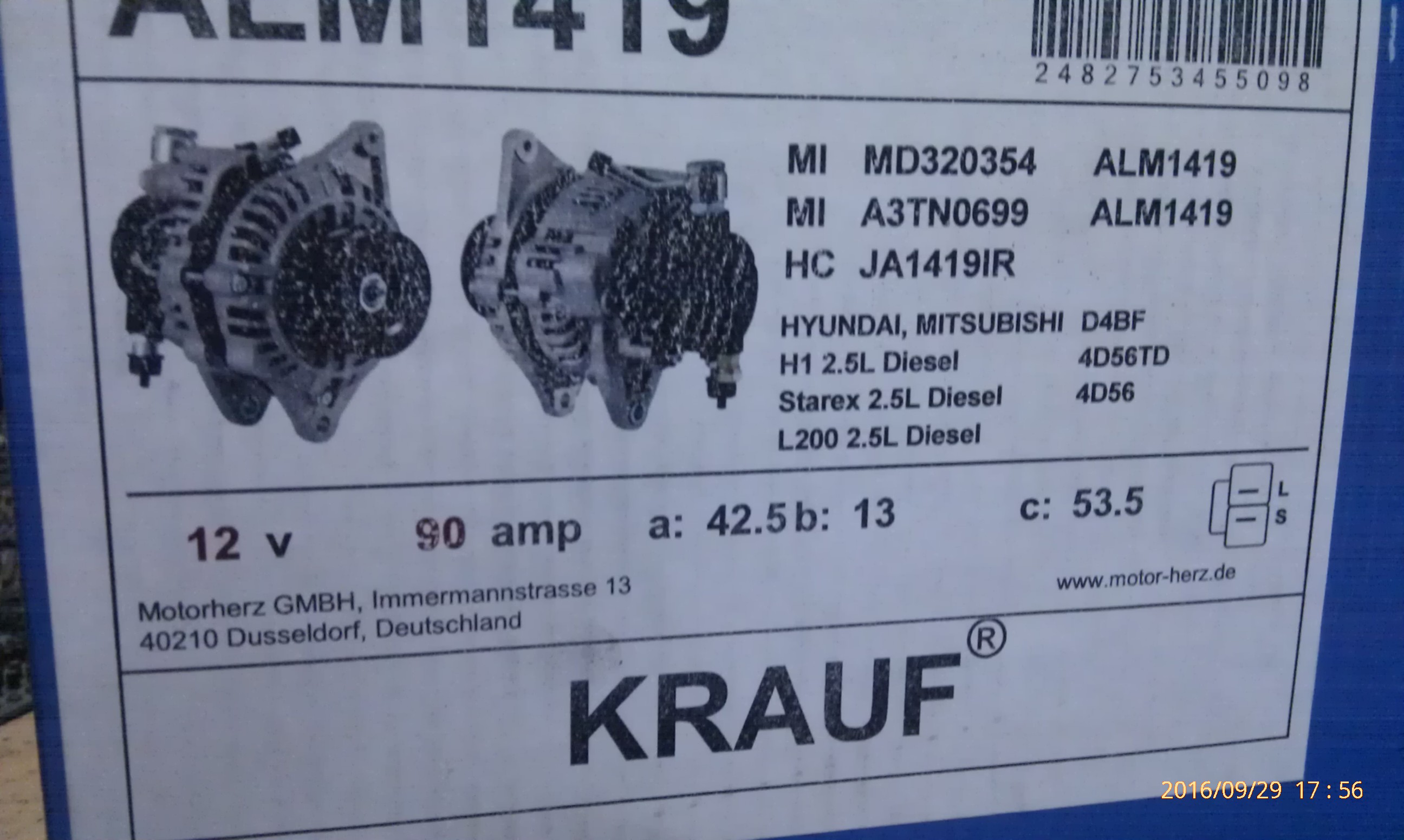 Интересует номер гены Cargo на 4D56T авто Паджеро 2 от 1995 года.