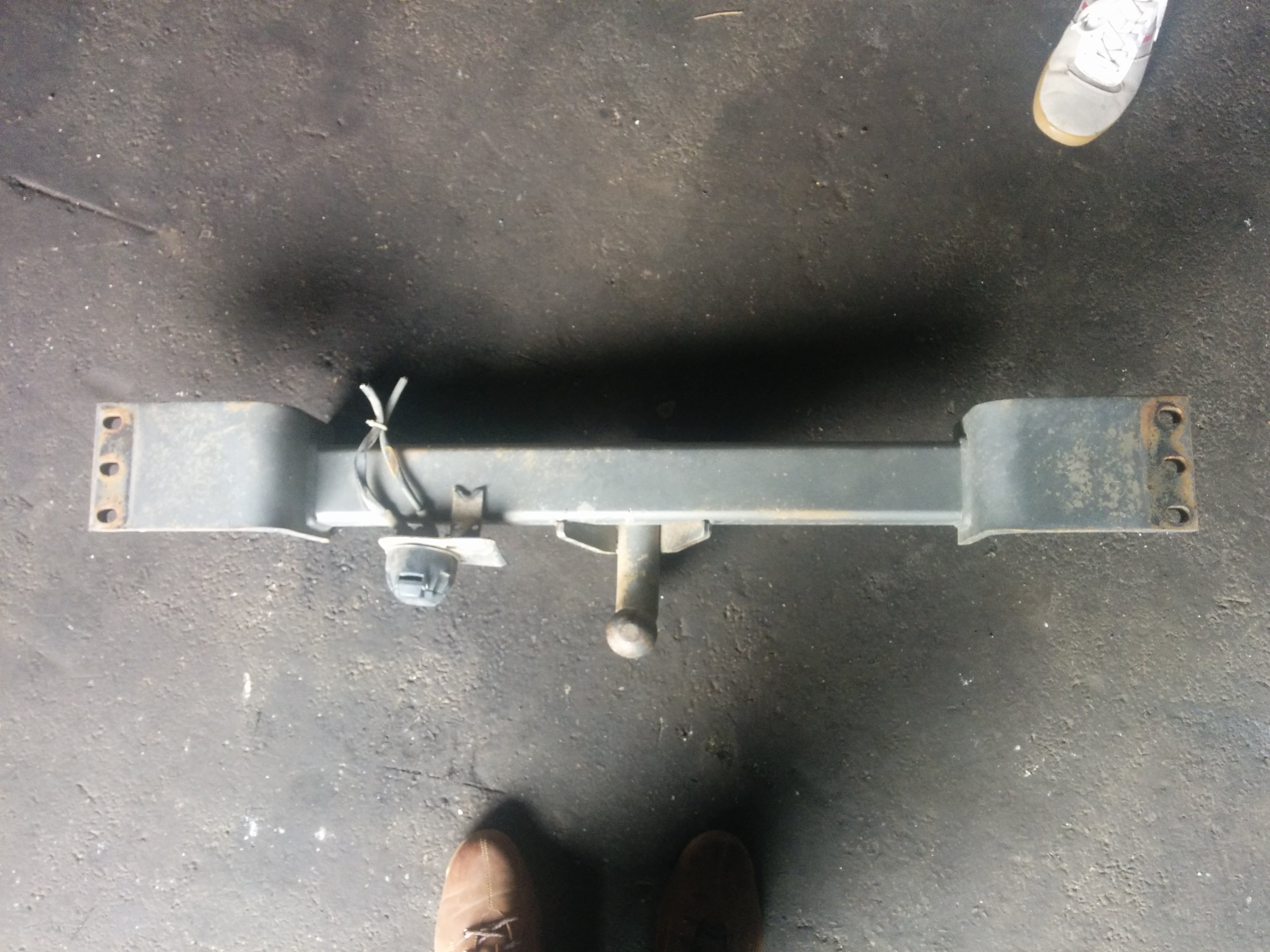 Собственно имеется фаркоп штатный (крепление на 6 болтов к раме), по назначению не использовался шарик девственный, просто он катался на машине, вместо него у меня уже давно усилитель из толстостеной трубы под джек, а фаркоп лежит.