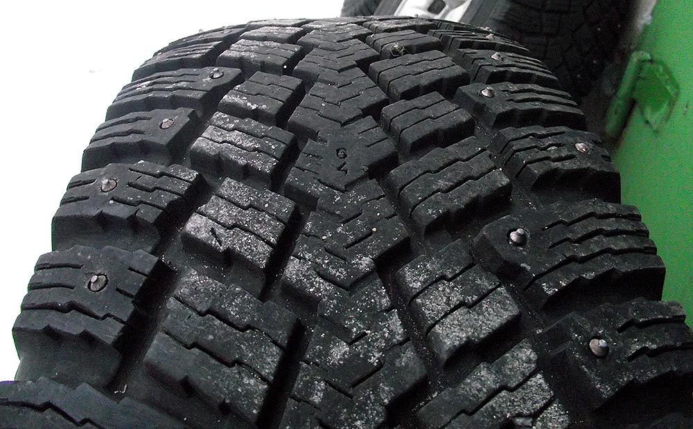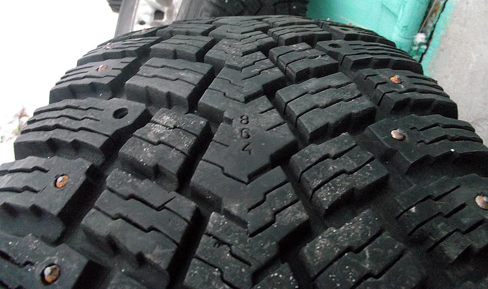 Шины Made in Finland, без "винта" и трещин. Остаток (по цифровым индикатору износа) - 2 колеса 8 мм, а два колеса - 6 мм. Шипы присутствуют не все.