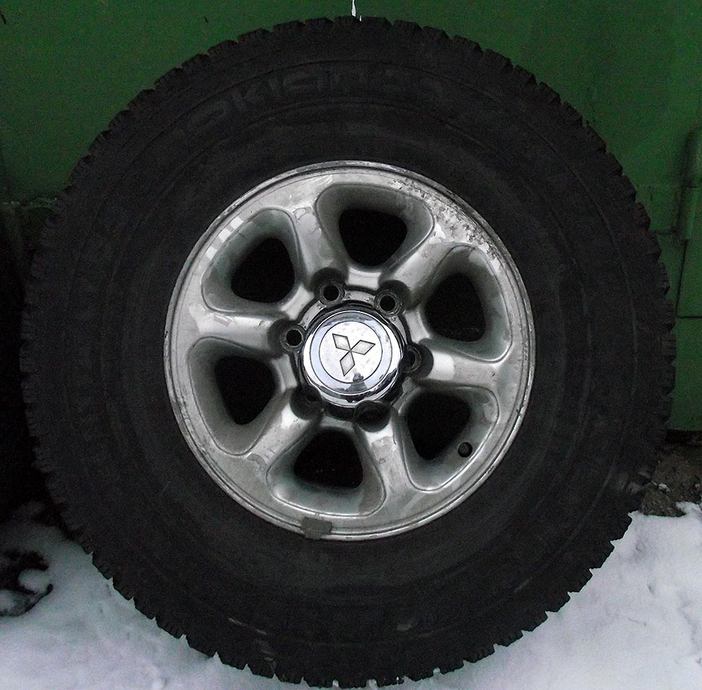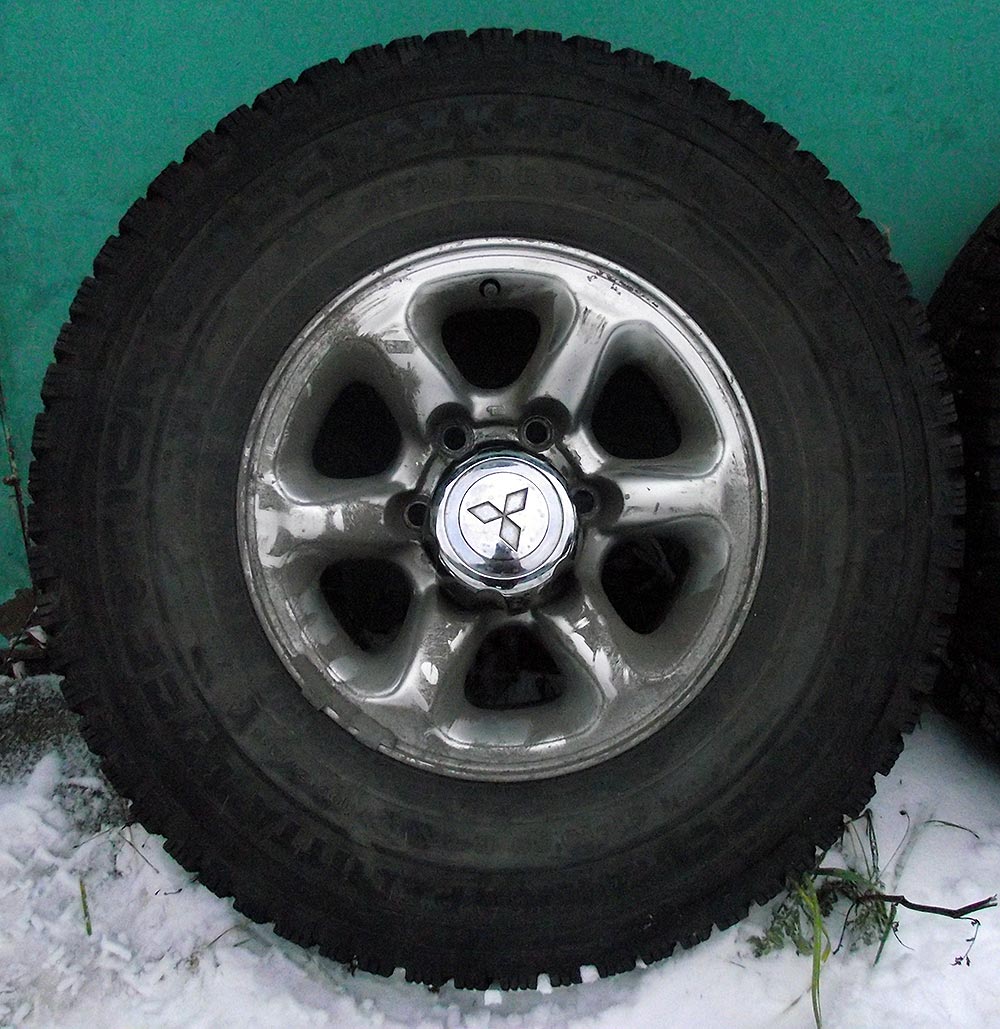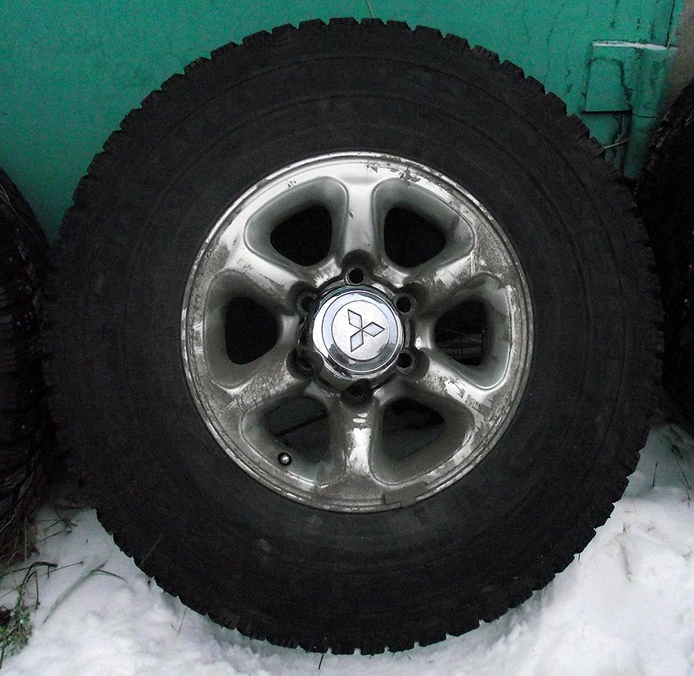 Есть комплект (4 шт.) шипованных колес Nokian Hakkapeliitta LT 31x10,5R15 на оригинальных литых дисках Pajero II.