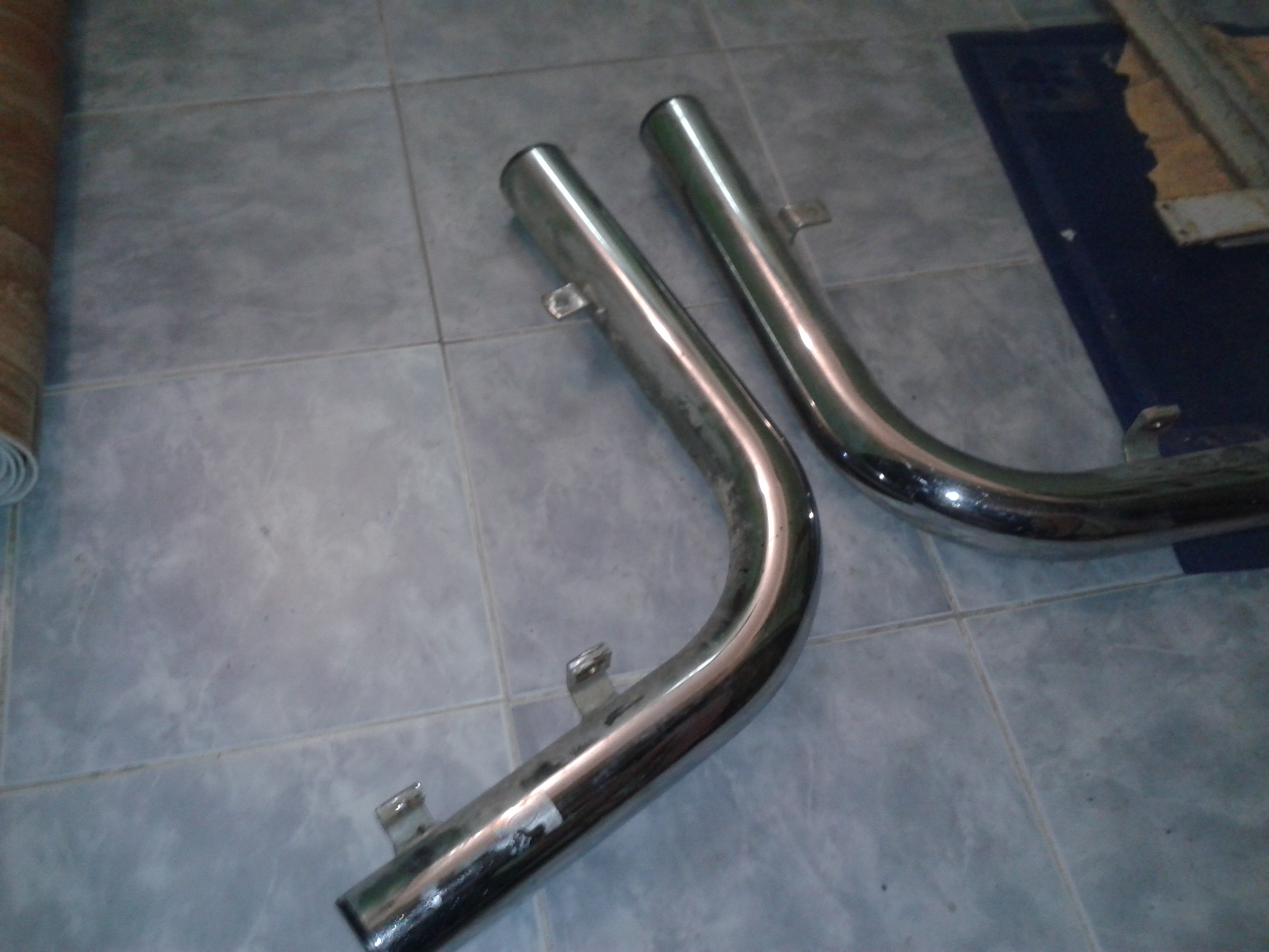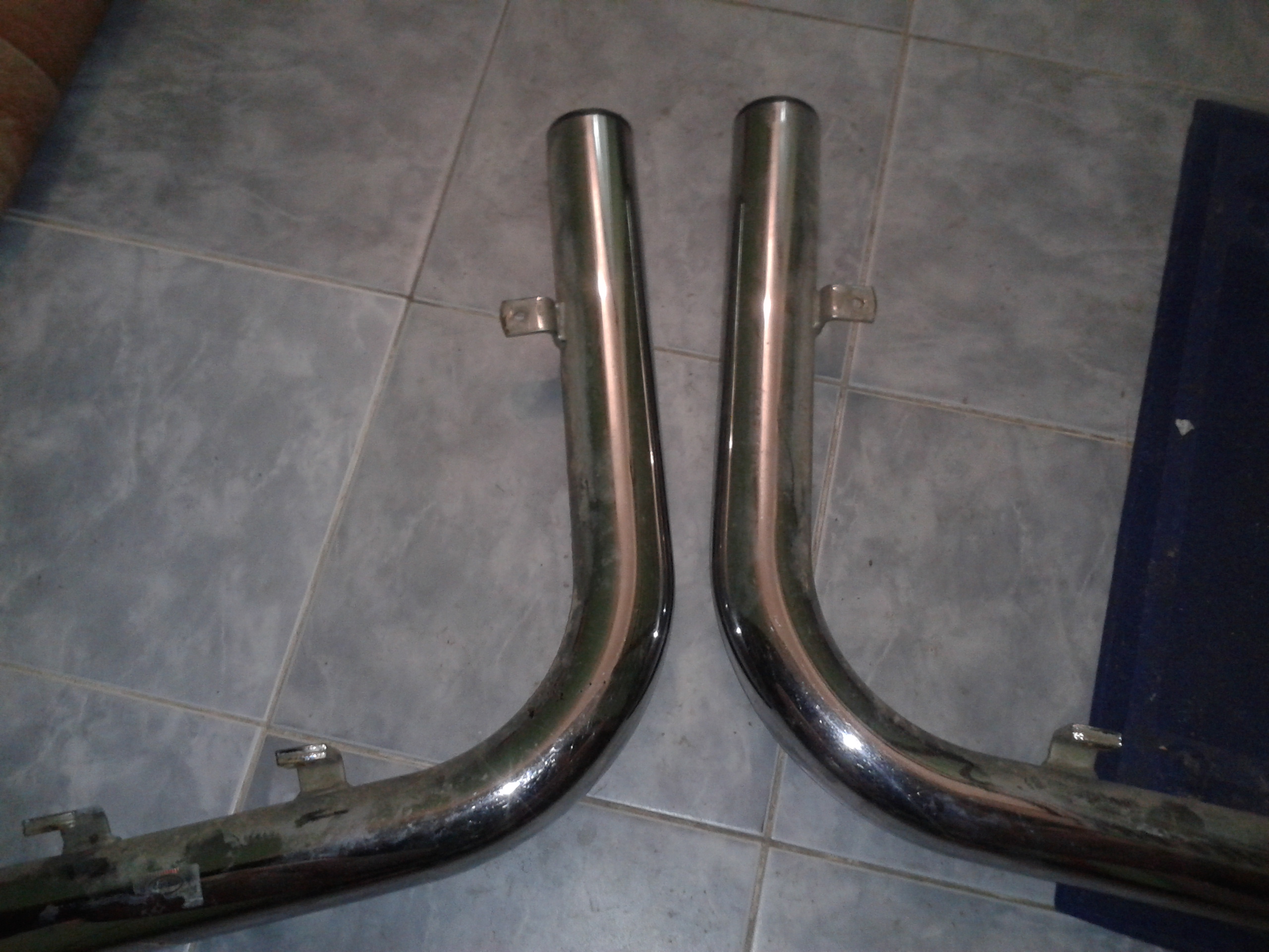 Хромированные. В хорошем состоянии, пластиковые торцевые заглушки на месте. 3000 руб.