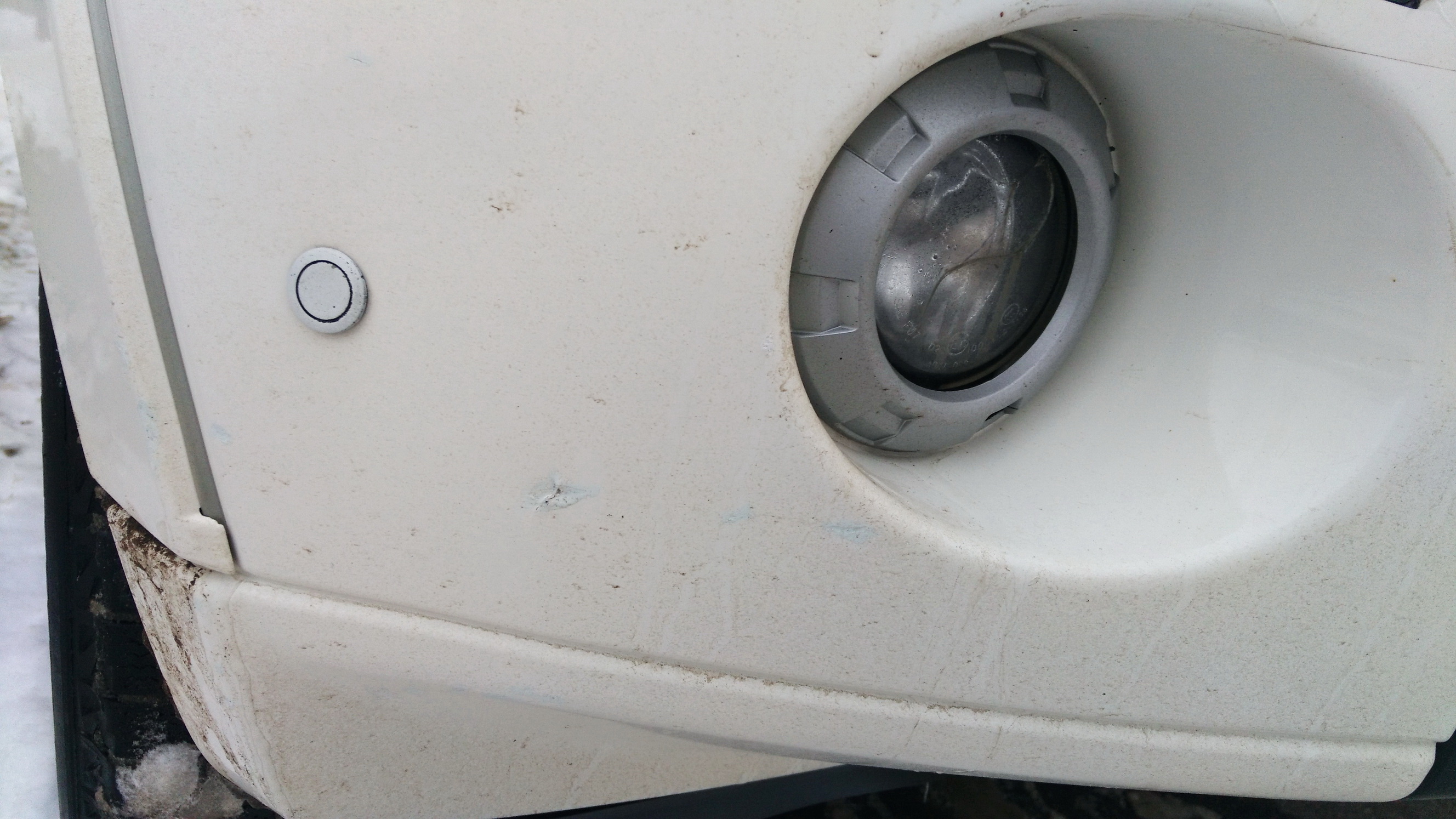Единственно - на правой части в районе туманки есть небольшая царапина и скол, они "подтыканы" краской.