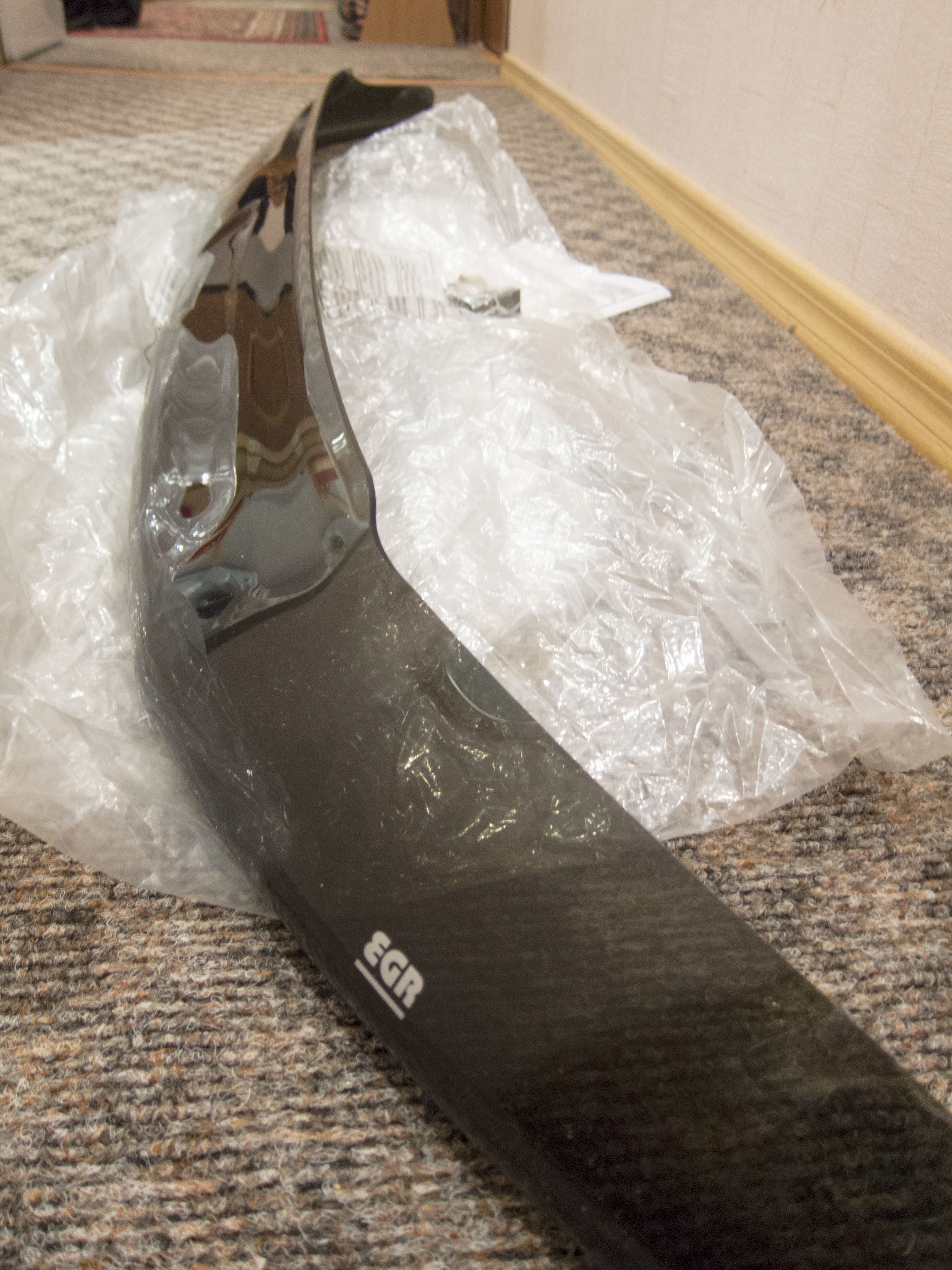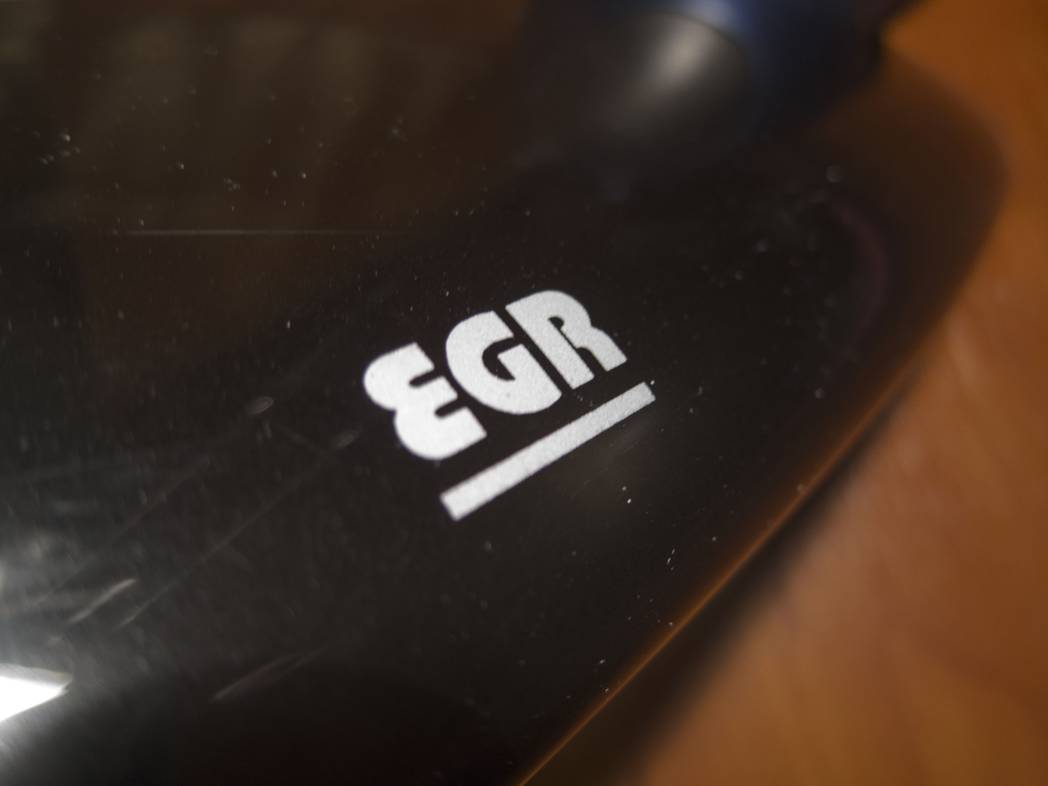 EGR, темный , широкий, смотрится отлично. В комплекте все крепежные штуки, ставится как в аптеке четко.