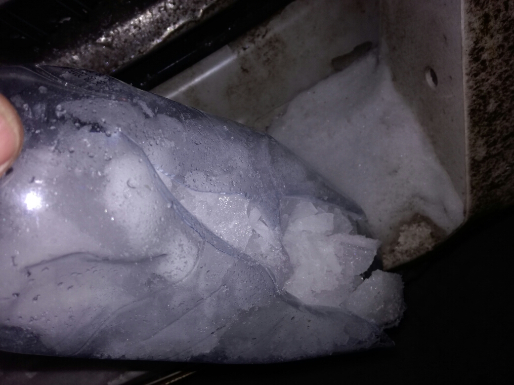 Как вдруг за спиной хлопок сравнимый с работой запала учебной гранаты и следом звук высыпающегося сталинита. Мышечные рефлексы сработали, сжалось все, а то бы колготки полные были. Остановился, понять ничего не могу. Колесо, мотор, питарда? Почему стекла целые? Вышел, и все нормально. Обошел вокруг, заглянул вниз, Все нормально! И тут я понимаю, что у Кипелова все нормально с головой в отличии от меня. Ну ладно, пусть я сошел с ума, так со слухом то все нормально. Открыв заднюю левую дверь одновременно и успокоился и удивился. 1,5 литровая бутылка газированной воды НЕ ОТКРЫТАЯ, замерзла и шандарахнула так, что лед из нее был аж в багажнике, хотя сама была на коврике за водительским креслом. Почему то сразу все отлегло, случись когда все тихо и спокойно ни людей в машине, не на скорости или пробке. 20 минут выгребания льда и все в порядке. Берегите себя!