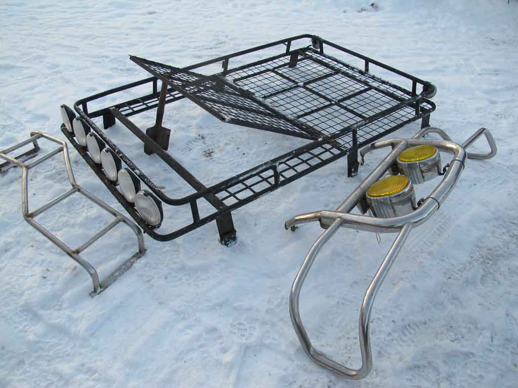 Перед продажей "облегчаю" машинку:) Люк в багажнике по размеру штатного, лесенка нержавеечная, кенгурин за габариты не вылезает, фары работают, на больших котлы процвели. Все вместе стоит 16500р. 8-900-474-96-73