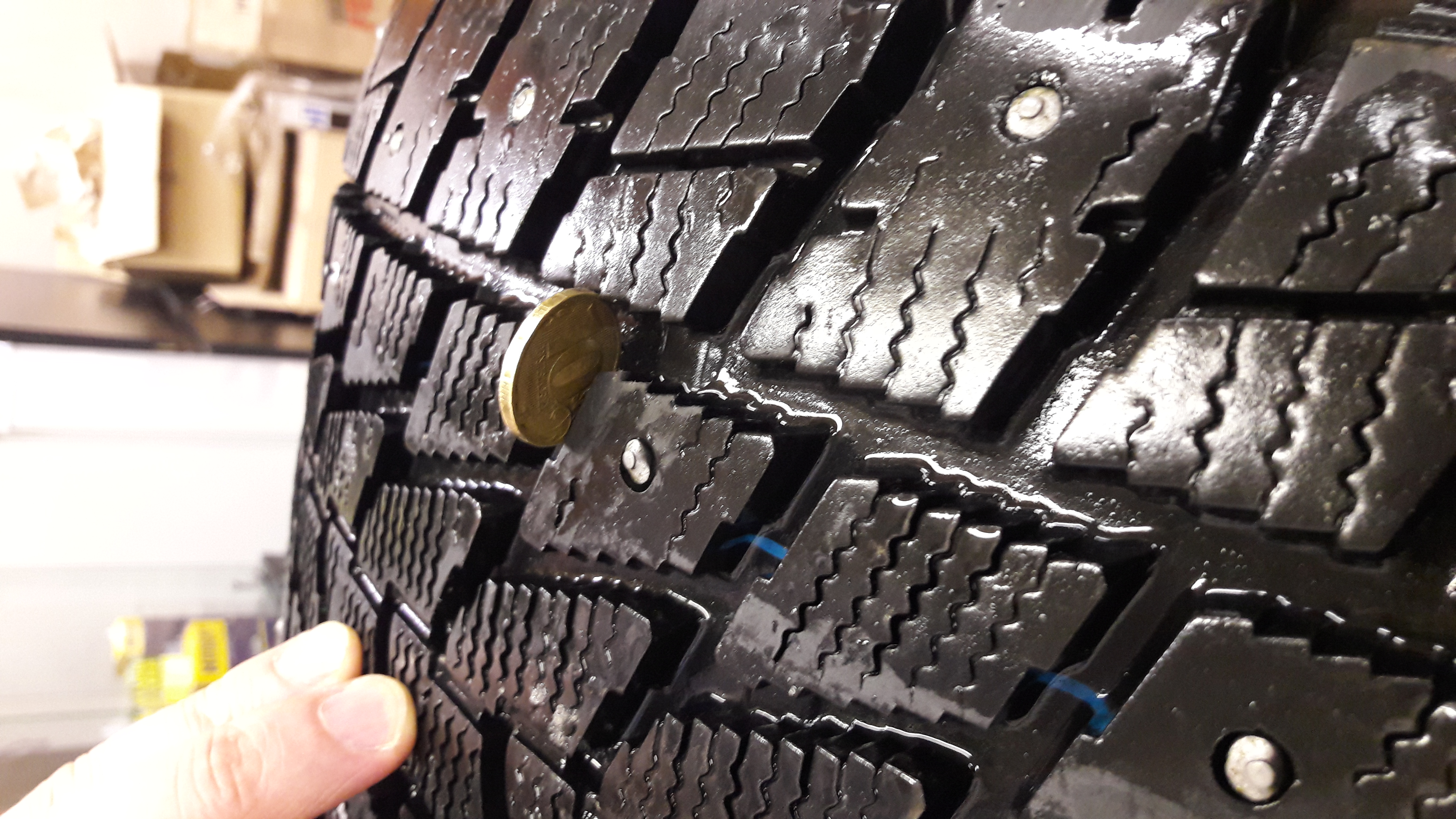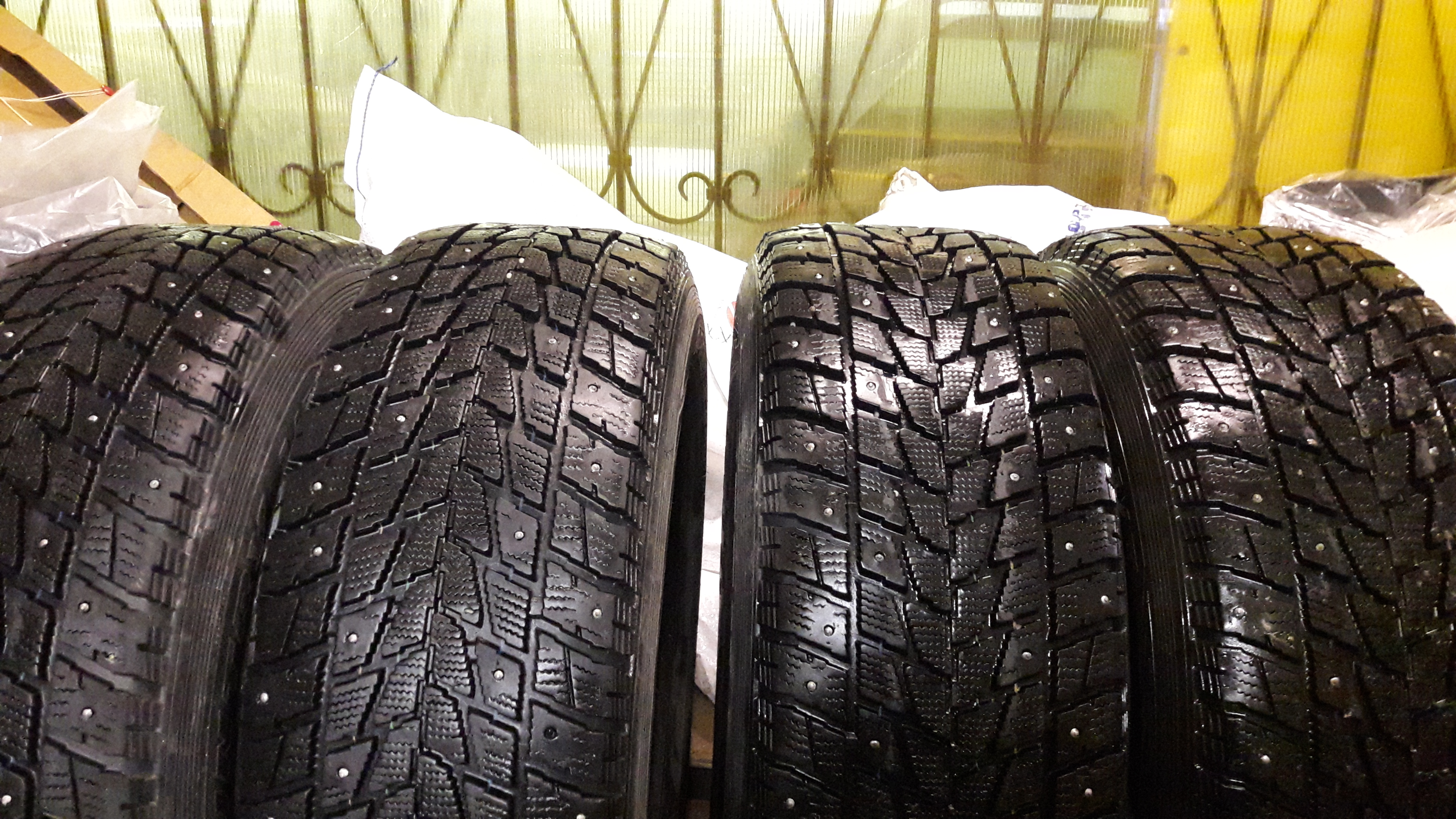 Шины в отличном состоянии, без порезов и проколов, шипы почти все на месте. Продаю потому что на НГ собрался в Европу, а туда на шипах не пускают, пришлось купить липучку.