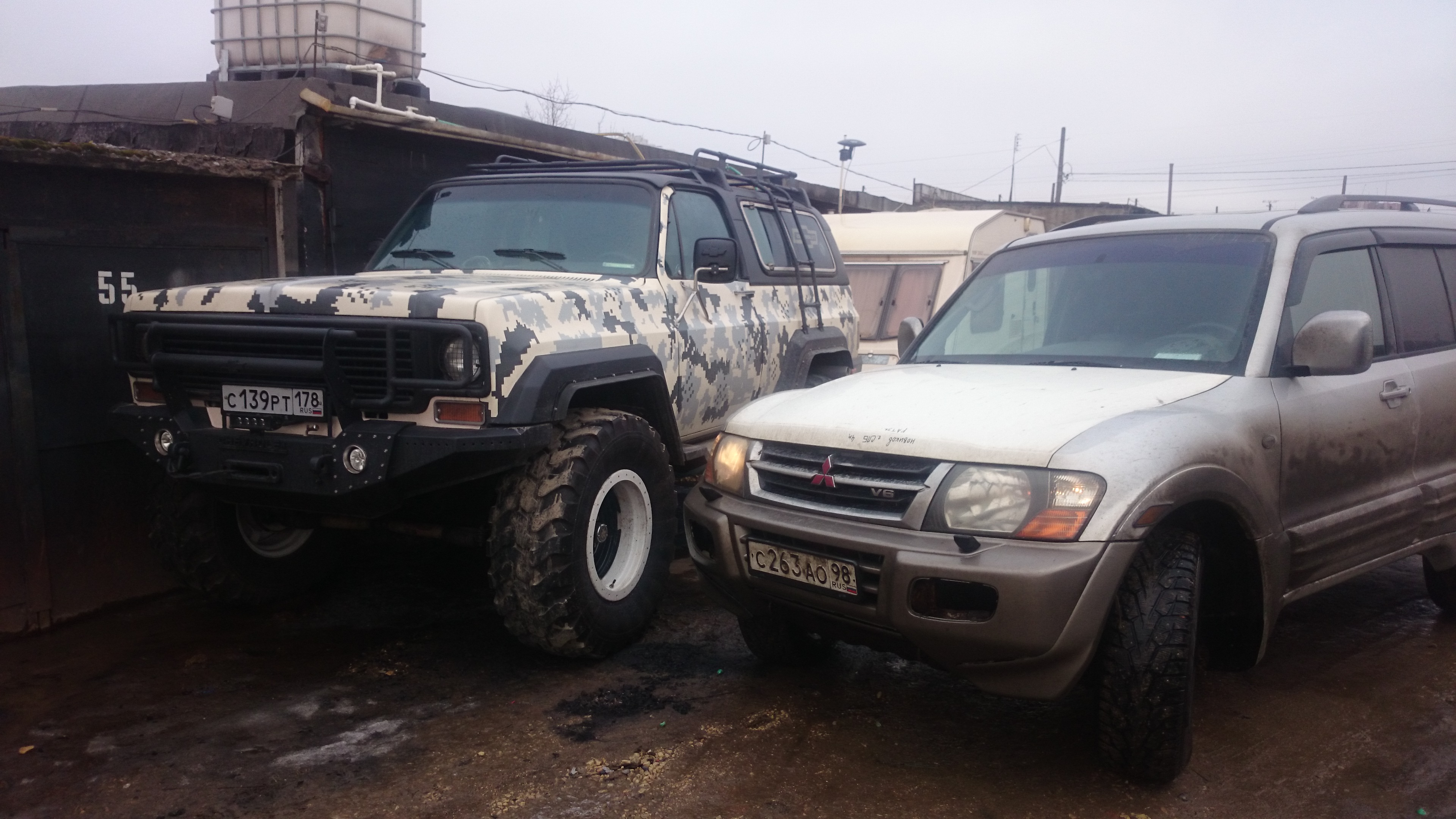 265/70/17 зима, 265/75/16 лето. Лифт+40 мм, Шноркель, Webasto, силовые пороги, съемная лебедь, рация в доработке.