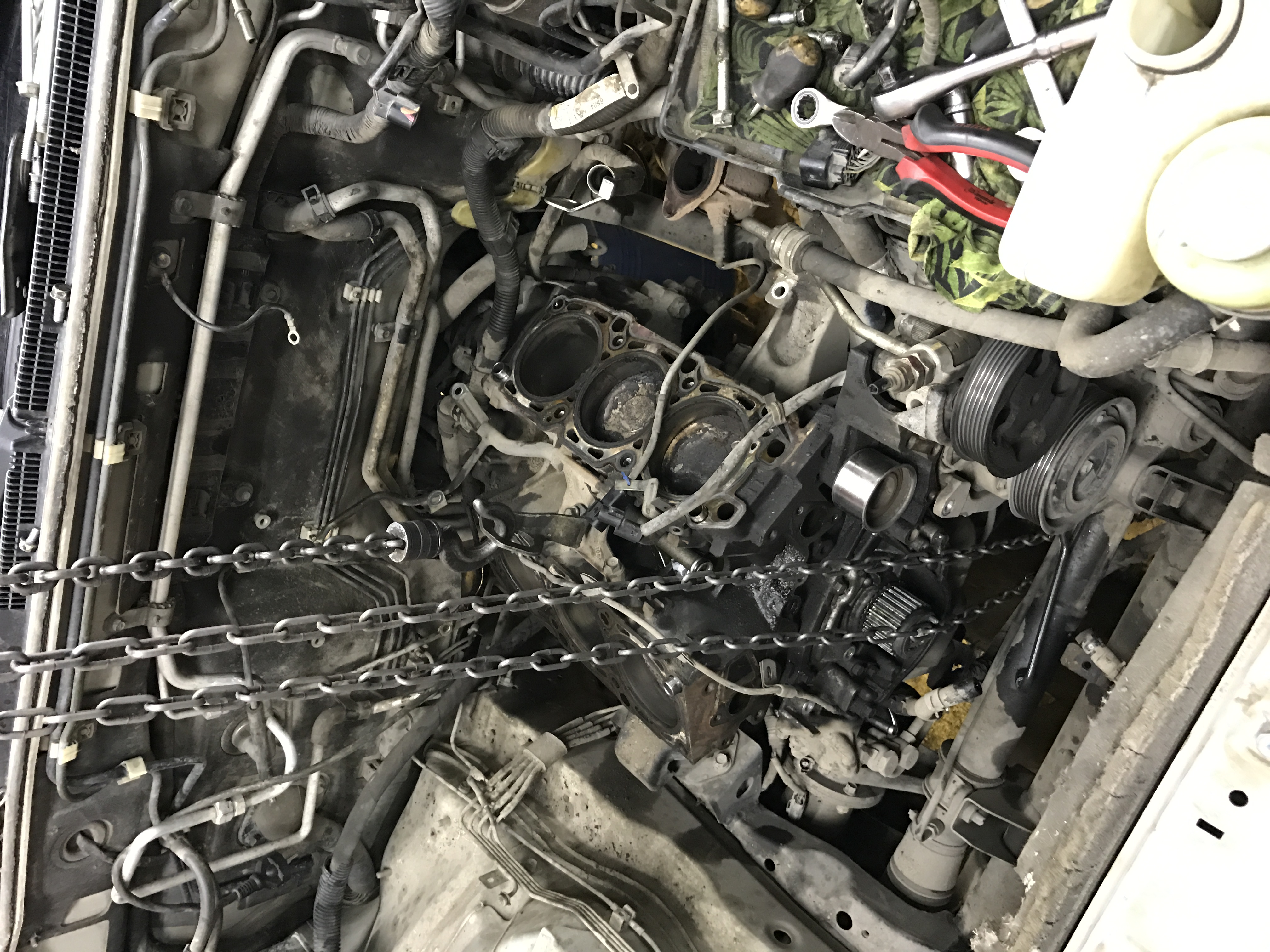 Вскрытие показало, что заклинило гидронатяжитель, ремень прослаб и загнуло два впускных клапана.