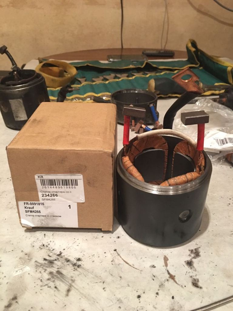 Ну так вот, мой стартер умер как герой!!! С каждым днём стал медленнее и по ощущениям вяло крутить мотор, а топом и совсем перестал придавать признаки жизни. Сняв стартер, я отвёз его специально обученным людям в ремонт стартеров-генераторов, объявили сумму в районе 10т рублей. Я подумал что смогу сделать это дешевле. Смотрите что из этого вышло... Разобрав я увил следующую картину С прогоревшими ламелями, естественно замена на китайский аналог Krauf SAM8962 цена 1081 рублик На самом деле если вовремя понять и не упустить момент критического износа щеточного узла, ламели на якоре не прогорят. К сожелению каталожный номер китайской щётки не могу найти но примерная цена что-то около 80рублей штука. Krauf SFM4266 цена 1551 рублик, и того ремонт обошёлся нам 2792 российских рублика и того виртуальная экономия составила 7208 рубля. Собрал стартер, поставил, крутит весело, бодренько результатом остался доволен. P.S Для тех кто считает что краилова ведёт к попадалову этот узел могут менять в сборе на оригинальный. Парни без обид! Это моё сугубо индивидуальное решение данной проблемы. С уважением Синхотрон.