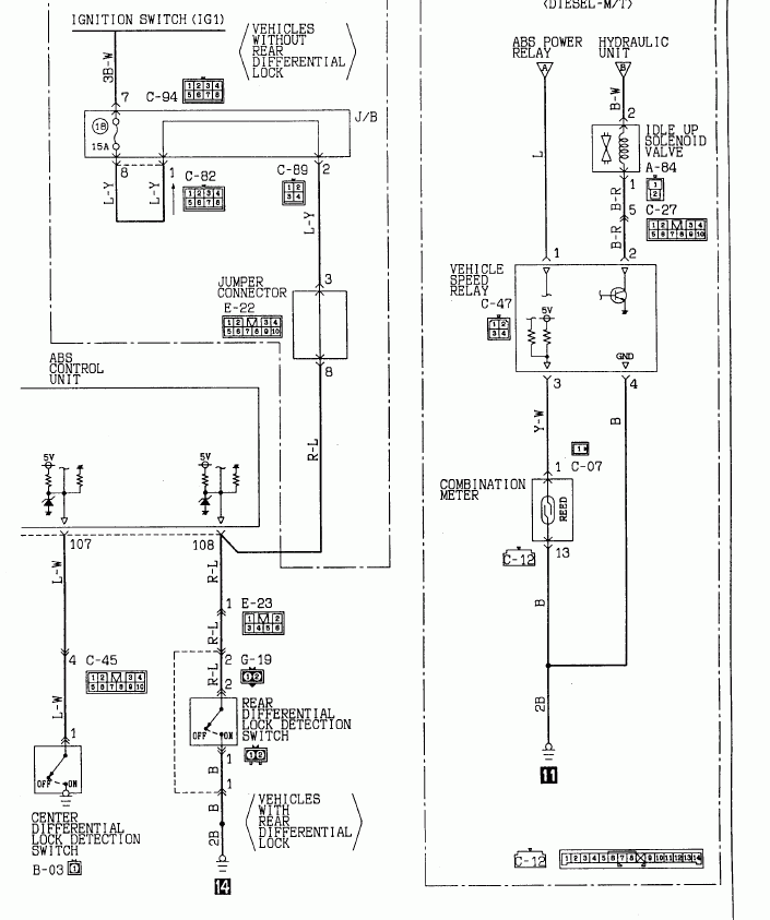 Остались провода, идущие в панель на датчик скорости и лампочку индикации, а так же провод от датчика блокировки центрального диффа. Вызвонил их, и О!!! Счастье! Все эти сигналы подключены оказались.