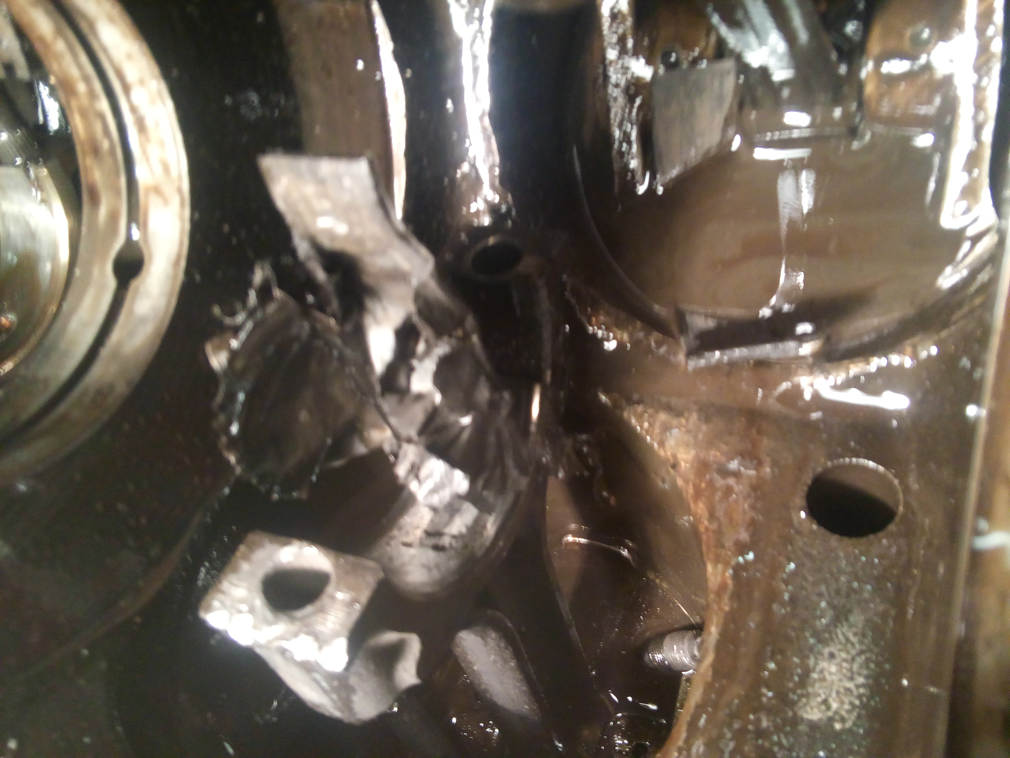 На данный момент так. Полировка и проверка 2-х головок на микротрещины 10000р. 3 шатуна убиты (вкладыши прикипели). Есть 3 поршня от 24кл 03 года (почти блестят)-говорят, не подойдут. Либо поиск б/у, либо попробовать их оторвать (вкладыши-но возможна выроботка). Колено похоже умерло (вкладыши шатунные 100). Есть колено от 6G72 24 кл МПС (стояло на продаже- девочка, как и поршня). Проверяю на совместимость. Так, в среднем коленвал около 20000р. Блок с постелью живой (допуск 0.5 -вкладыши стояли 0.25). Думаю сразу поменять эти вкладыши в совокупе. Развалилось крепление маслянного фильтр ( не открутить было трубки) - нашел за 2000р. Заказал набор прокладок на АЛИ за 3300р. Дальше по вкладышам и шатунам определюсь, и напишу. Фоток сверху накидал. Вариант покупки двиг еще рассматриваю!!!