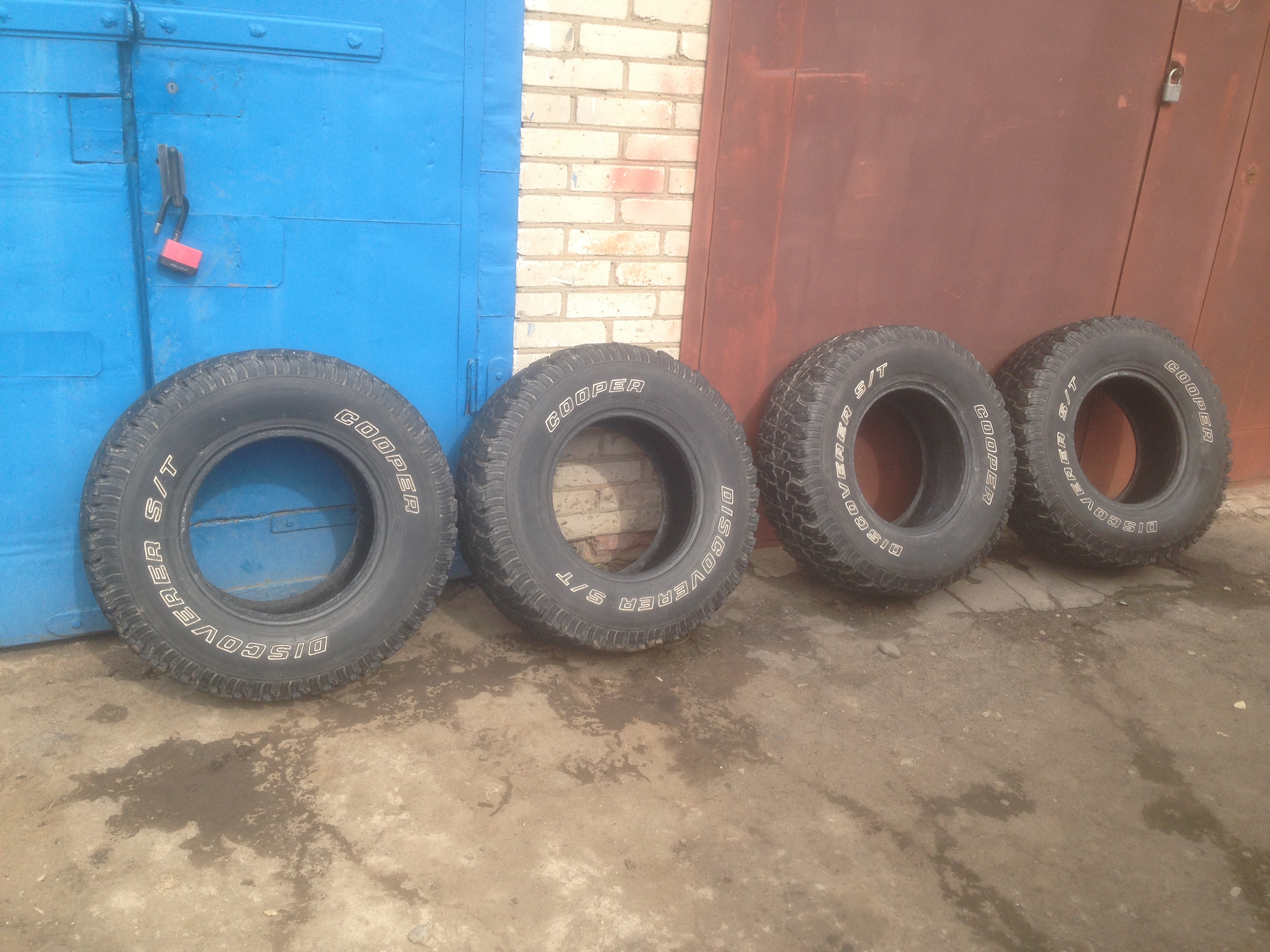 Продаю 4 шины Cooper Discoverer S/T 31x10.5 R15. Есть небольшие трещины, одно колесо было собрано с камерой.