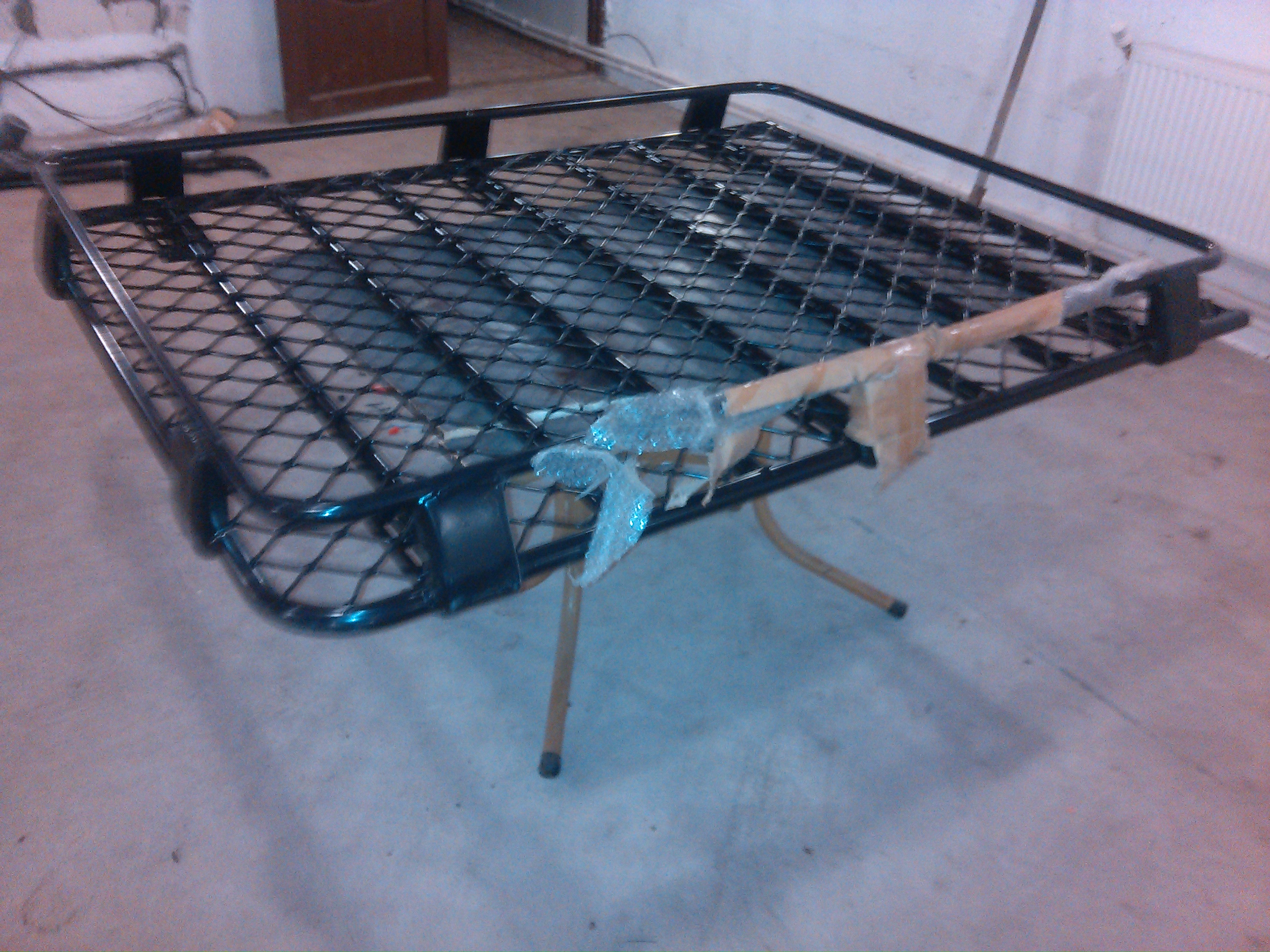 есть алюминиевая корзина, заводская китайская, сварена из труб, на дне сетка