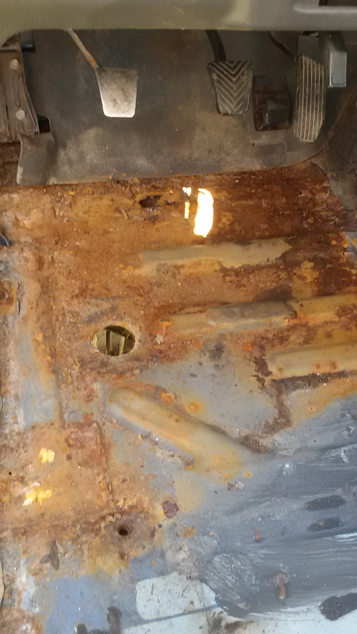Разобрал весь салон, нашел несколько дырок в кузове - это не напугало. А вот крепление: кузов-рама спереди отсутствует, сгнило на самом кузове. Скоро займусь сваркой. А сейчас продолжаю эпопею с заменой передней подвески и деффектовкой тормозных суппортов.