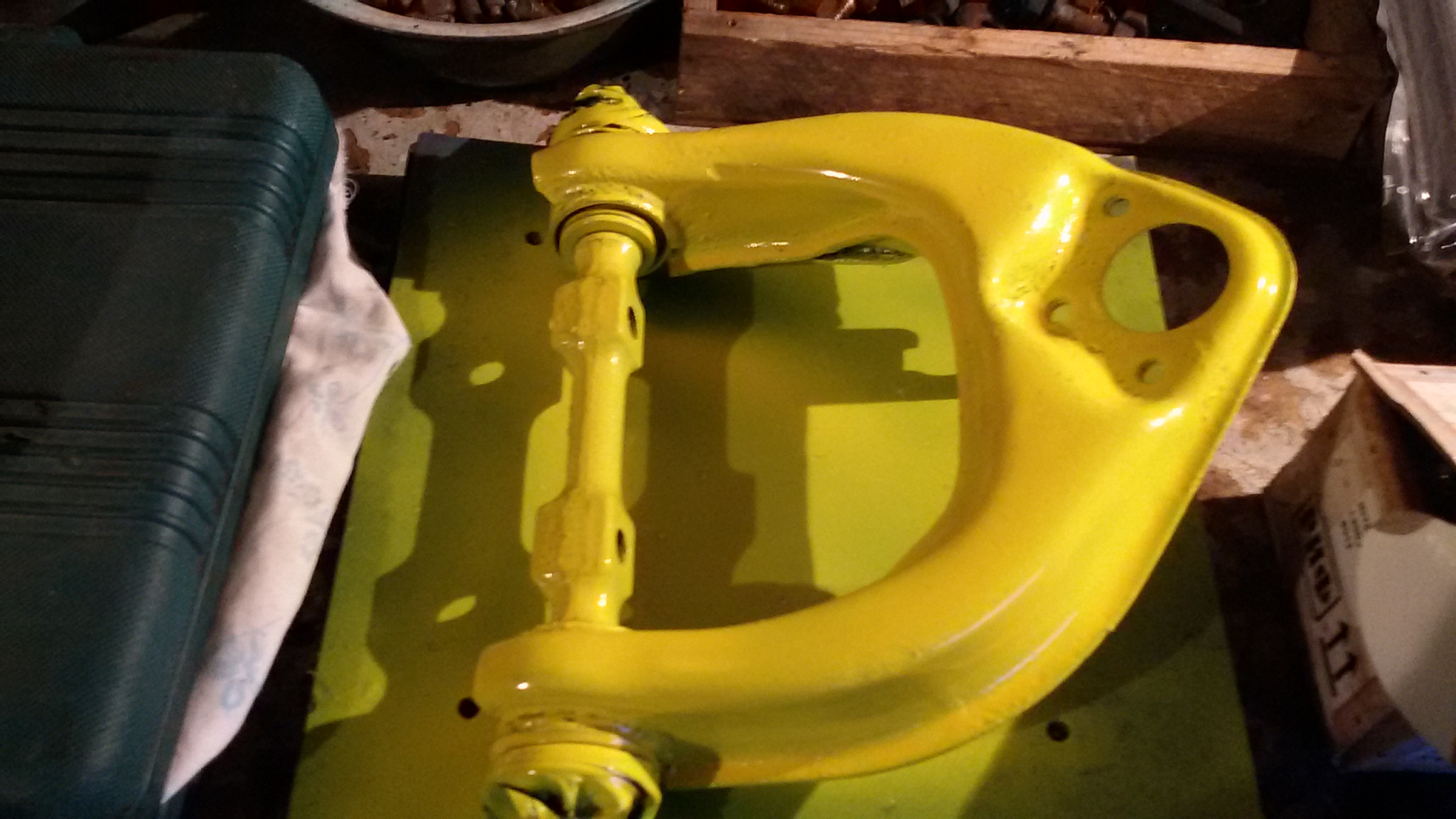 Выкладываю фотографии обновок. Диски уже обработал дробеструем, и покрасил в черный глянец. Извратился над верхними рычагами и покрасил их в желтый цвет. Разобрал хабы РИФ, как оказалось производитель Aisin, поэтому в их надежности не сомневаюсь, все детали идентичны, даже вес соответствует.
