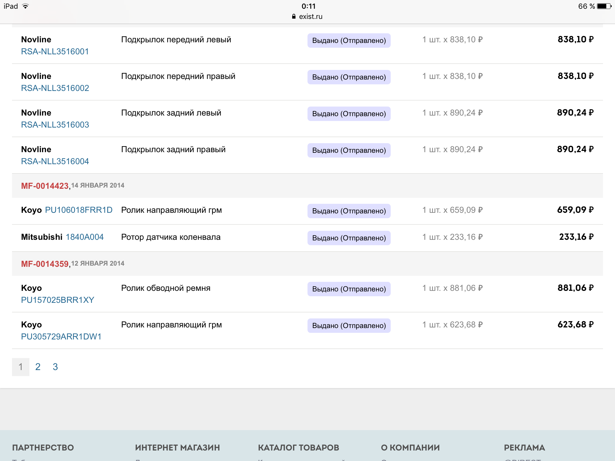 Вот артикулы из архива заказа