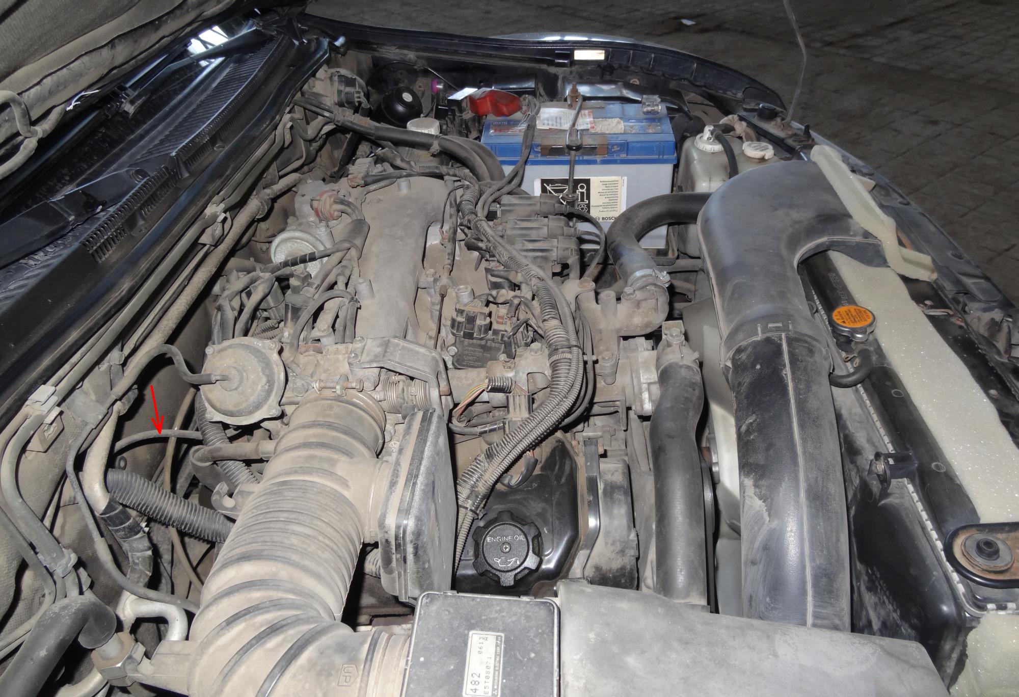 Добрый день . Подскажите на паджеро 3 двигатель 6G72 где на впускном коллекторе находиться вход трубки разряжения которая идет к клапанам подключения переднего редуктора. Моя просто оборвана с коротким кончиком . На слух ни где ни шипит ни подсасывает , двигатель работает ровно .