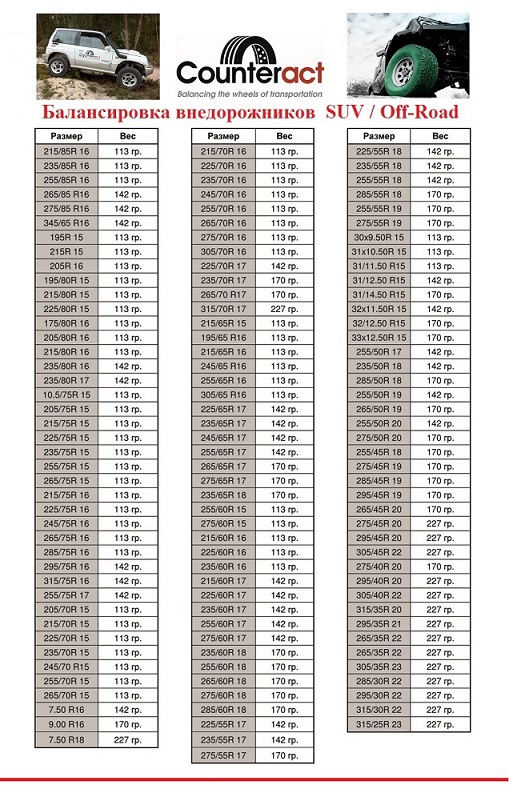 Таблицу размеров и требуемого количества для внедорожников прилагаю.