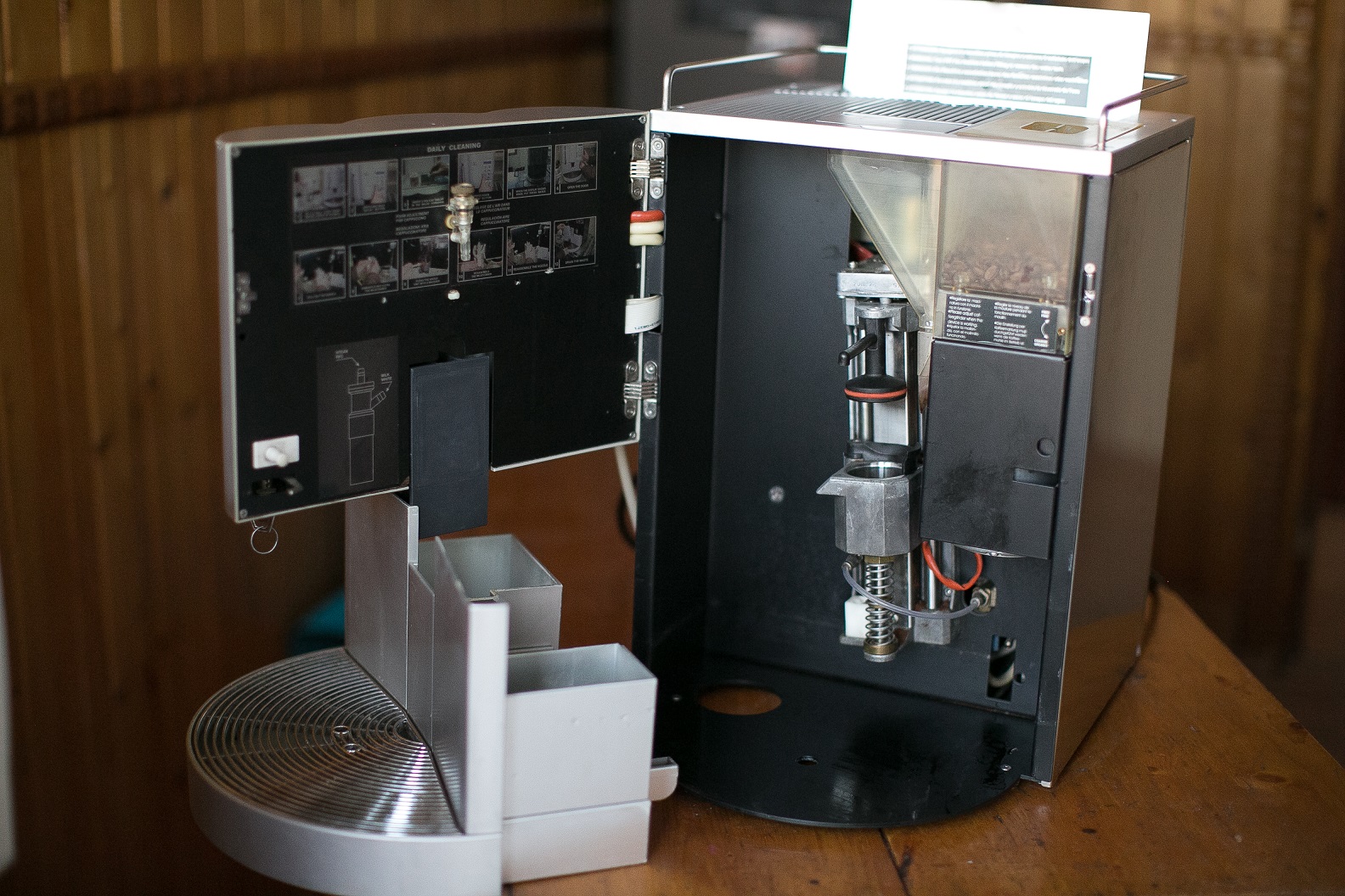 Кофемашина со встроенной кофемолкой и резервуаром для воды.