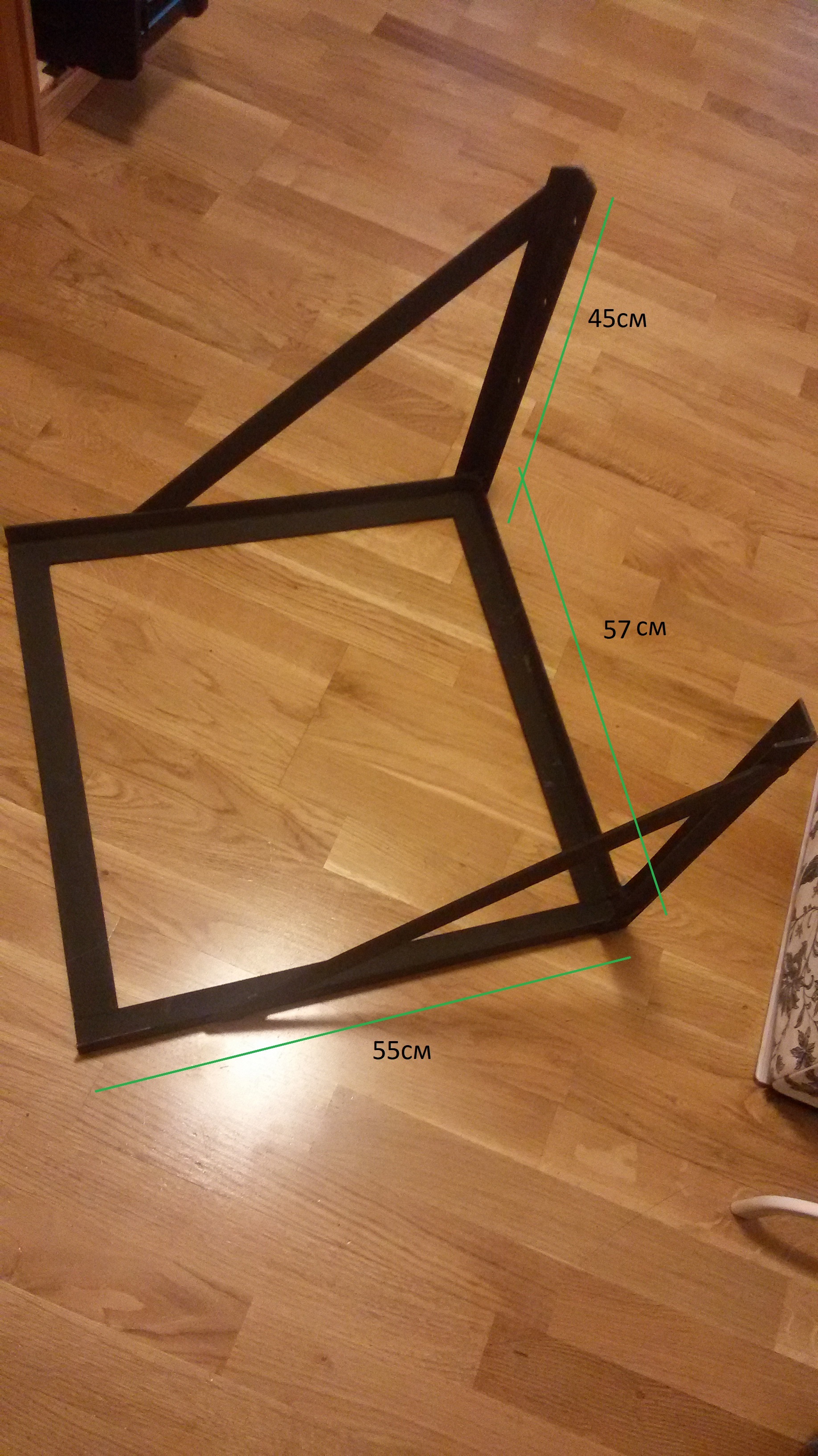 Варился в одном клубном сервисе. Стальной профиль толщиной 3мм. Загрунтован. 6 точек крепления к стене диаметром 10мм. Была идея повесить духовку над посудомойкой, но поменялась концепция.