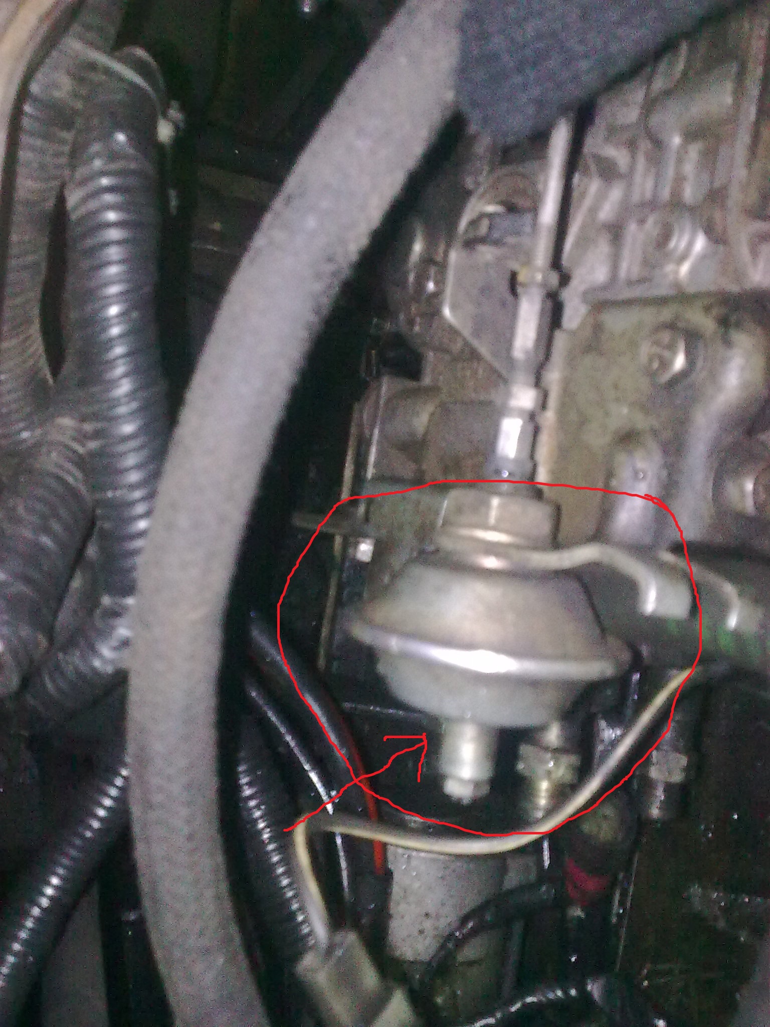 стоит с боку на ТНВД там где закреплены тросик газа, круглая бабышка с выходящей из неё тягой в виде буквы Г с зади выходит трубка, вот на её и одевается второй шланг от этого клапана( та что на фото)