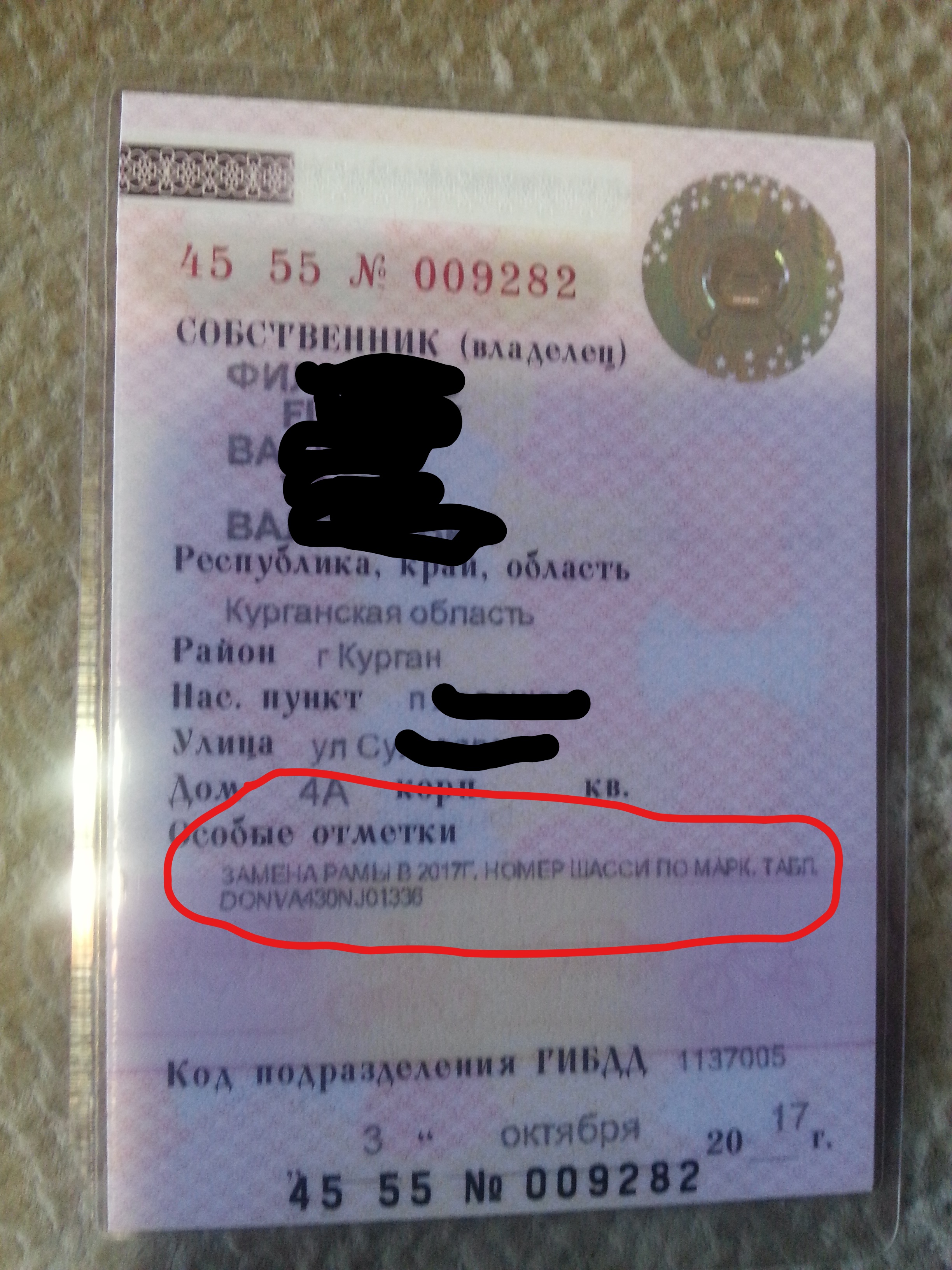 Далее в одной из тем я писал, что хочу менять раму и затем ее регистрировать, на что мне один из модераторов сказал что, это не законно и я несу не весть что