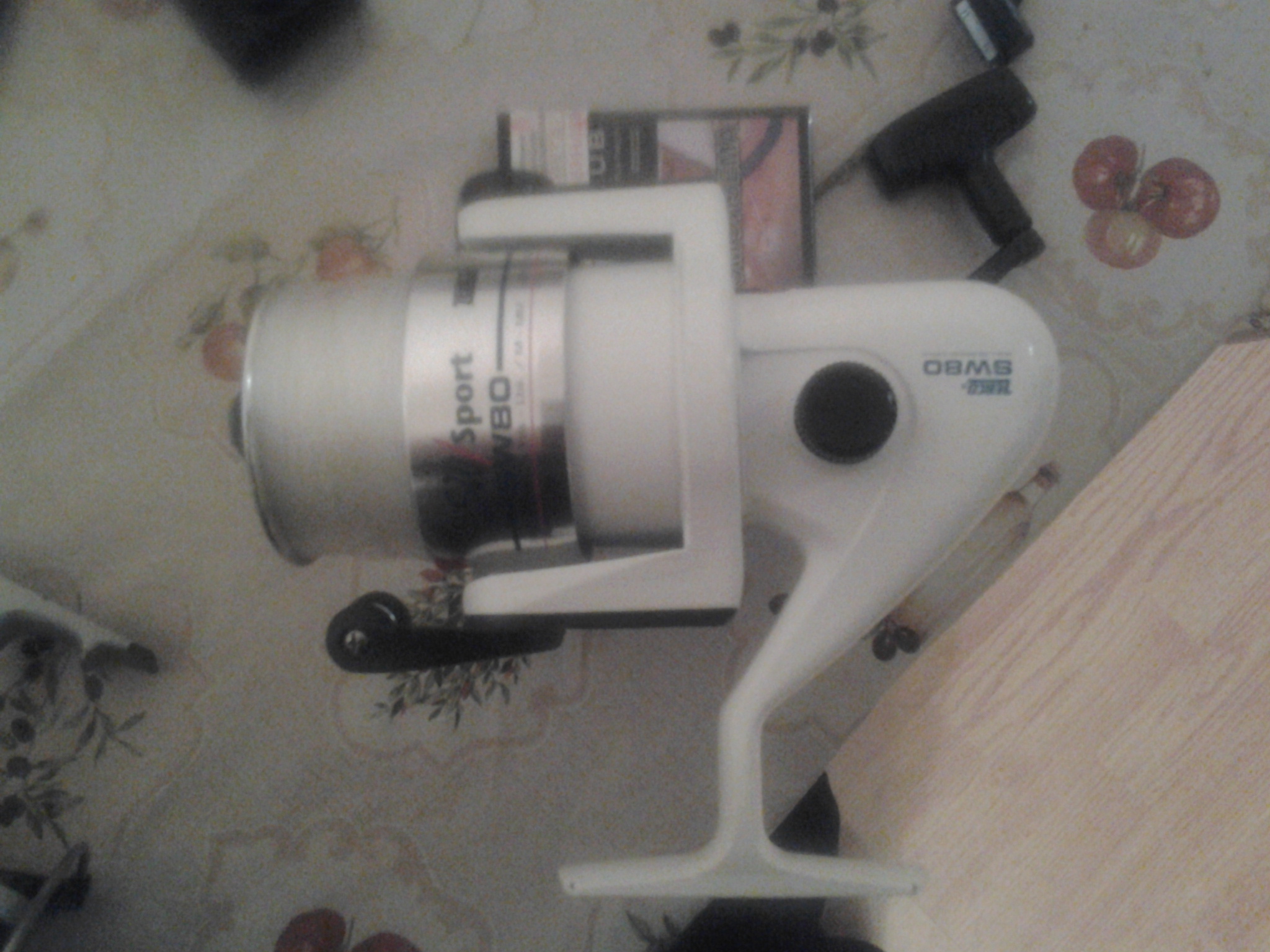 1. белая фирма Zebco SW80 SW\SPORT на ней намотана заводская леска и запечатано ценник 5000 руб