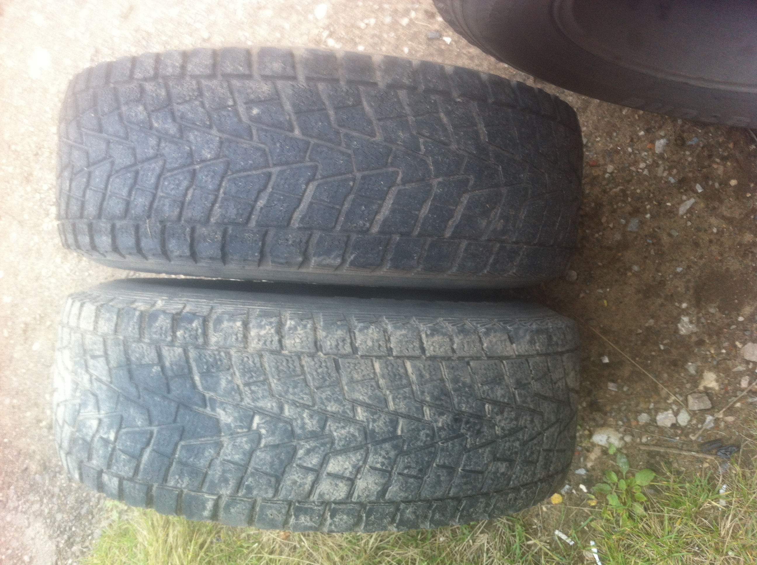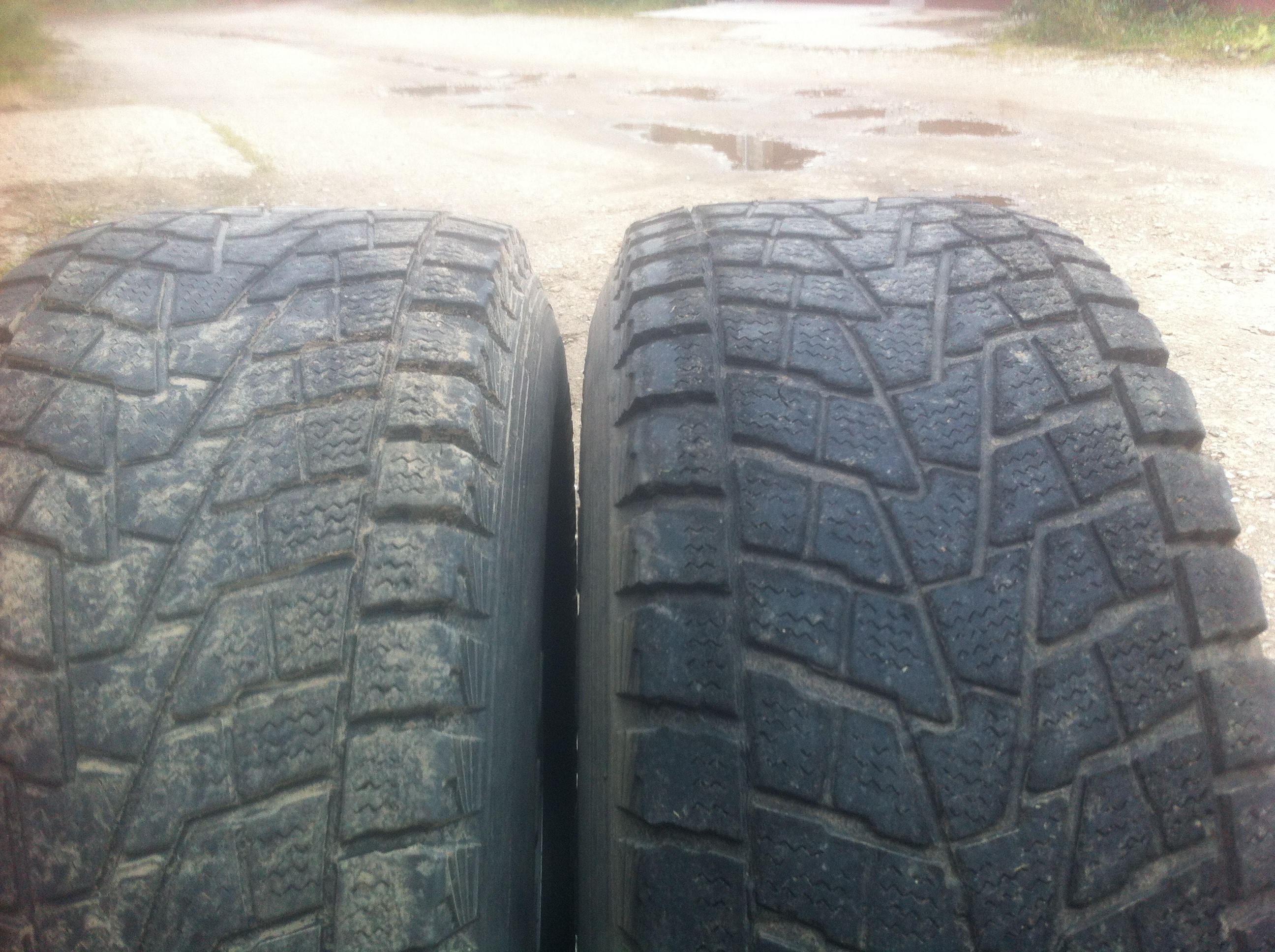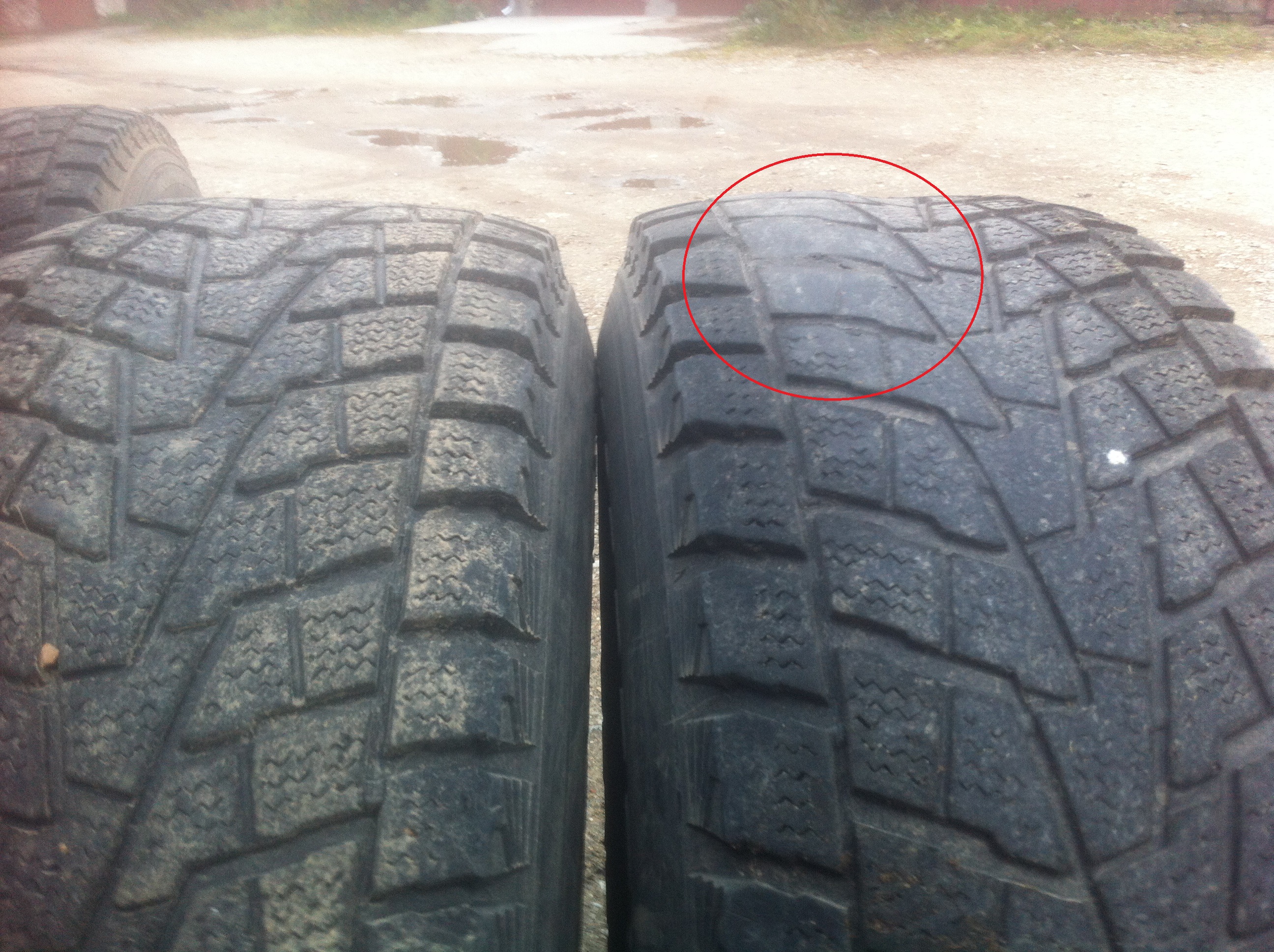 Резина Bridgestone Winter Dueler 265/70 R16 На одном колеса грыжа, на фото отмечена, остальные 3 еще ничего.