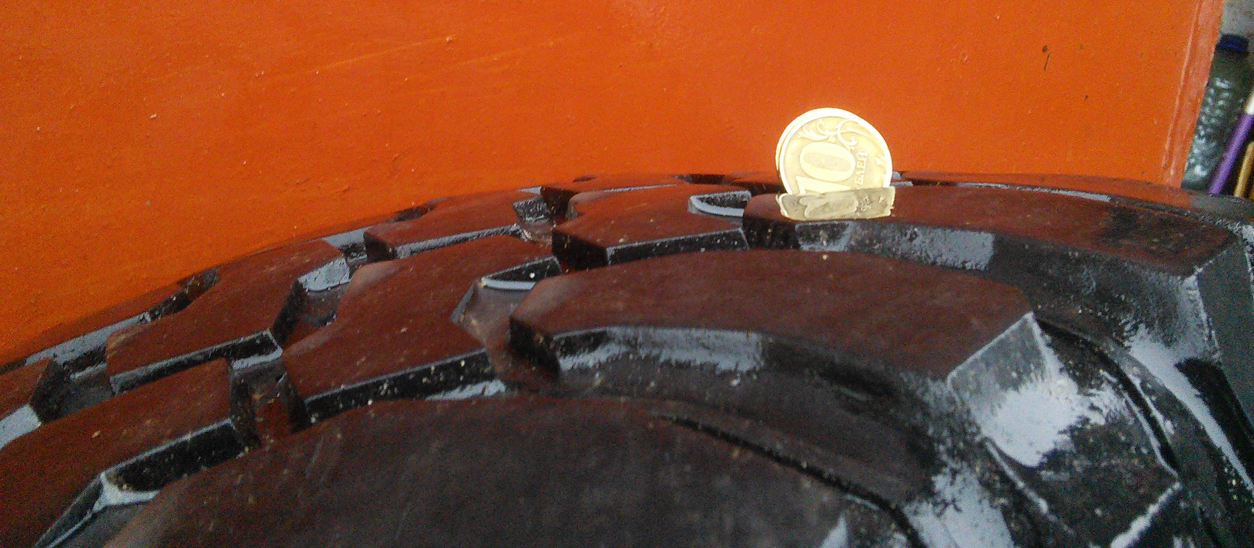 на хороших баллонах остаток протектора 7-9 мм,на не очень хороших от 2 до 10 мм по краям.
