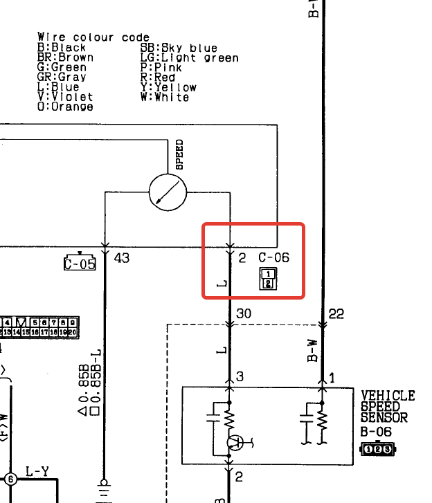 На монтеро нашел - тоже C-06 пин 2. Но. На плате контакты стоят так, что их можно повернуть - и тогда пин 2 разъема уйдет на другой болт спидометра. В общем вот информация для размышления и сравнения, проверяй.
