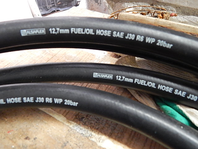 Купил такой рукав . 12,7mm FUEL/OIL HOSE SAE J 30 R 6 WP 20 bar "ALSAFLEX OIL" - рукава напорные резиновые с нитяным усилением предназначены для подачи под давлением топлива и масел на нефтяной основе, могут применяться для подачи антифриза и тосола в системах охлаждения. Работоспособны при температуре от -30 до +90С. Цвет - черный. Изготавливаются в соответствии с SAE J30.Рукав для нефтепродуктов 12,7 мм (20 бар)