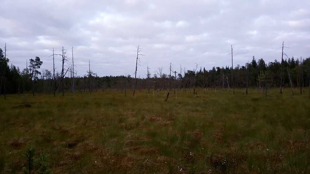 Следующий участок из за ремонтов в районе Сегежи - ехали долго... Ночевка в Карелии не получилась, хотели проехать на Кумозеро- но гати в плохом состоянии, потратили час на преодолевание первых 3-х км, плюнули, и встали просто на полянке. Без дождя, но с комарами.