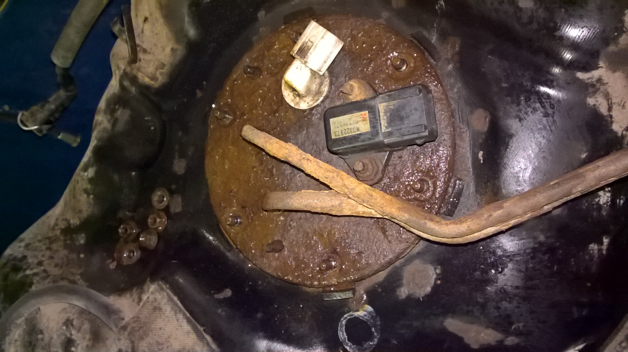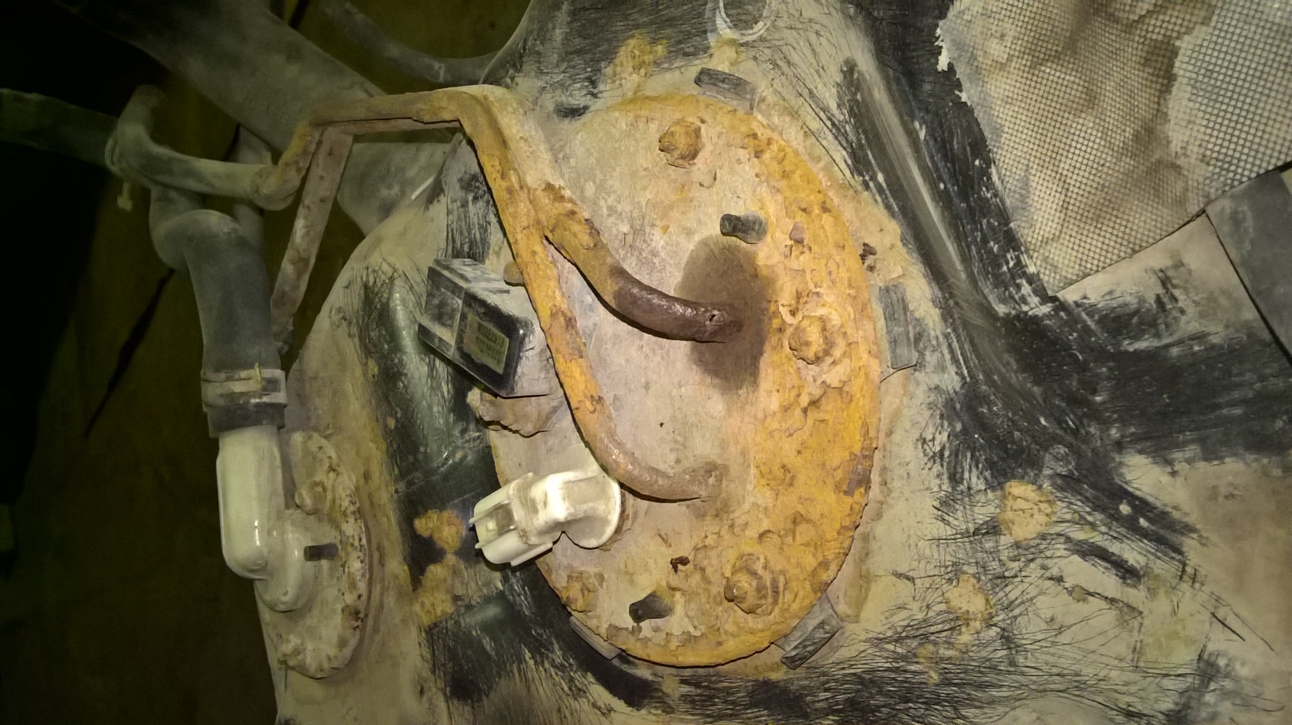 Сегодня решил все же снять бак ,т.к. раз все снято ,то решил и сетку на фильтре бензонасоса заменить ,и о ужас ,все держалось видать на ржавчине и грязи . (проехала машинка 320 тыс.км , я из них накатал 200 тыс.км ) всему приходит конец когда-то.