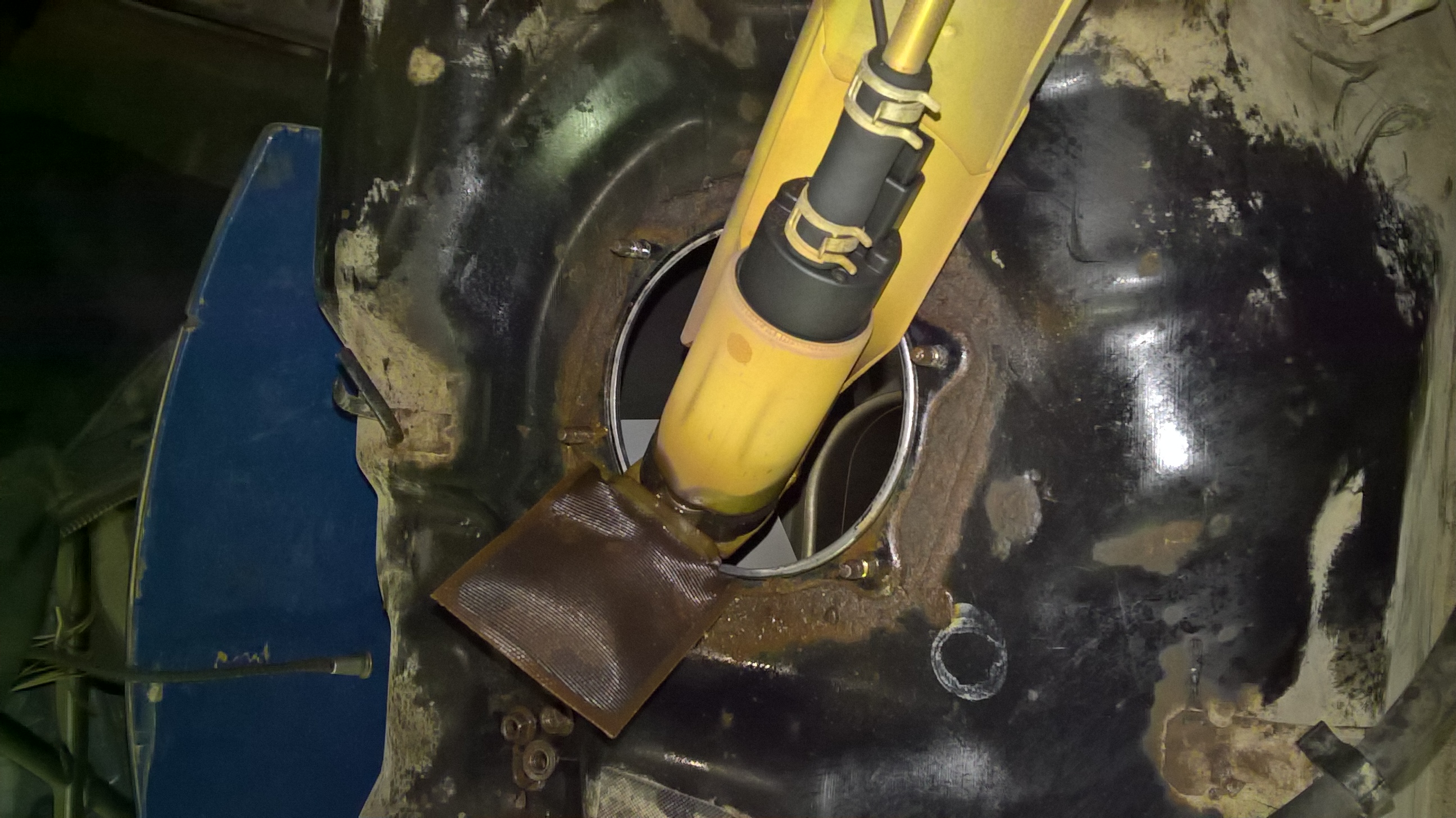 Месяц назад проделывал все то же самое. Горловина прогнила аж до дыр и колесом накидало грязь в бак, как следствие забитая сеточка на насосе, забитый фильтр, забитые форсунки и вода в баке.