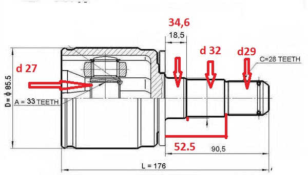 Добрый день у кого есть б/у внутренний оригинальный Шрус MR528710 интересуют размеры, нашел аналог хочу сравнить параметры прежде чем ставить. На картинке во вложении интересующие размеры указаны красным цветом. Спасибо.