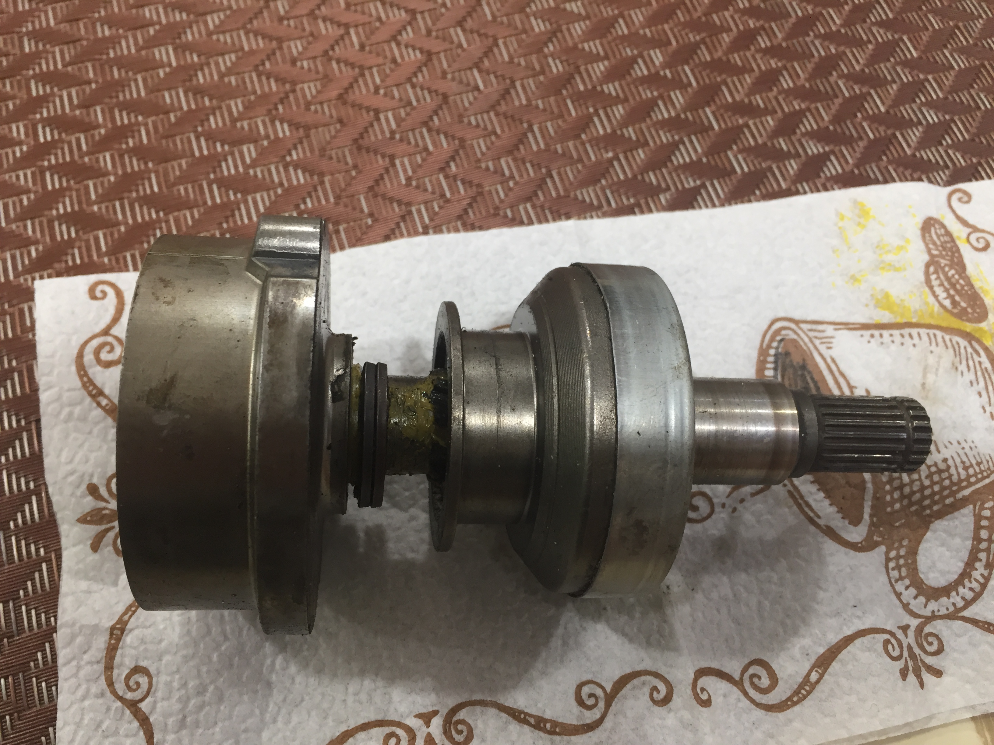 Я бы его сначала того... молоточком, аккуратненько. На предмет расшевелить. При срезании болгаркой можно повредить вал планетарного редуктора. На нём косые проточки сделаны, велика вероятность нарезать новых (ненужных).
