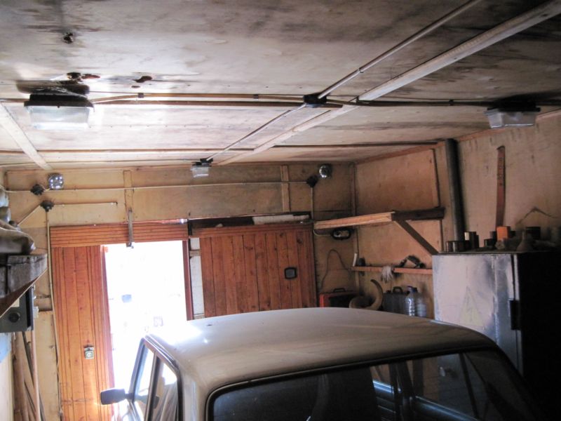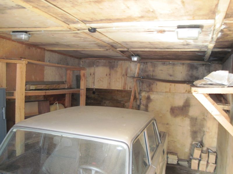 Гараж металлический, если не ошибаюсь 4х6 м., утеплен пенопластом и фанерой, электричество есть, погреб есть.