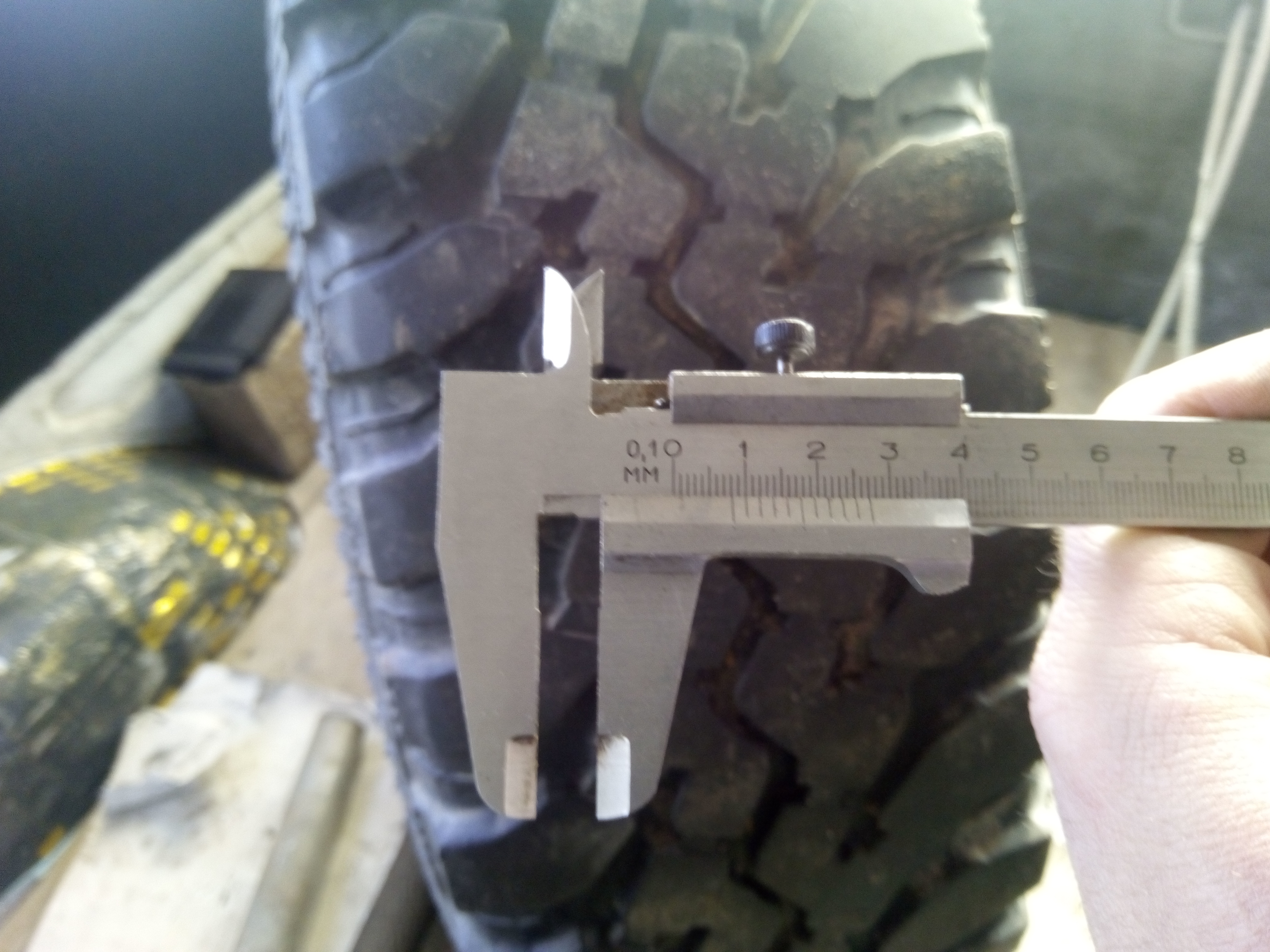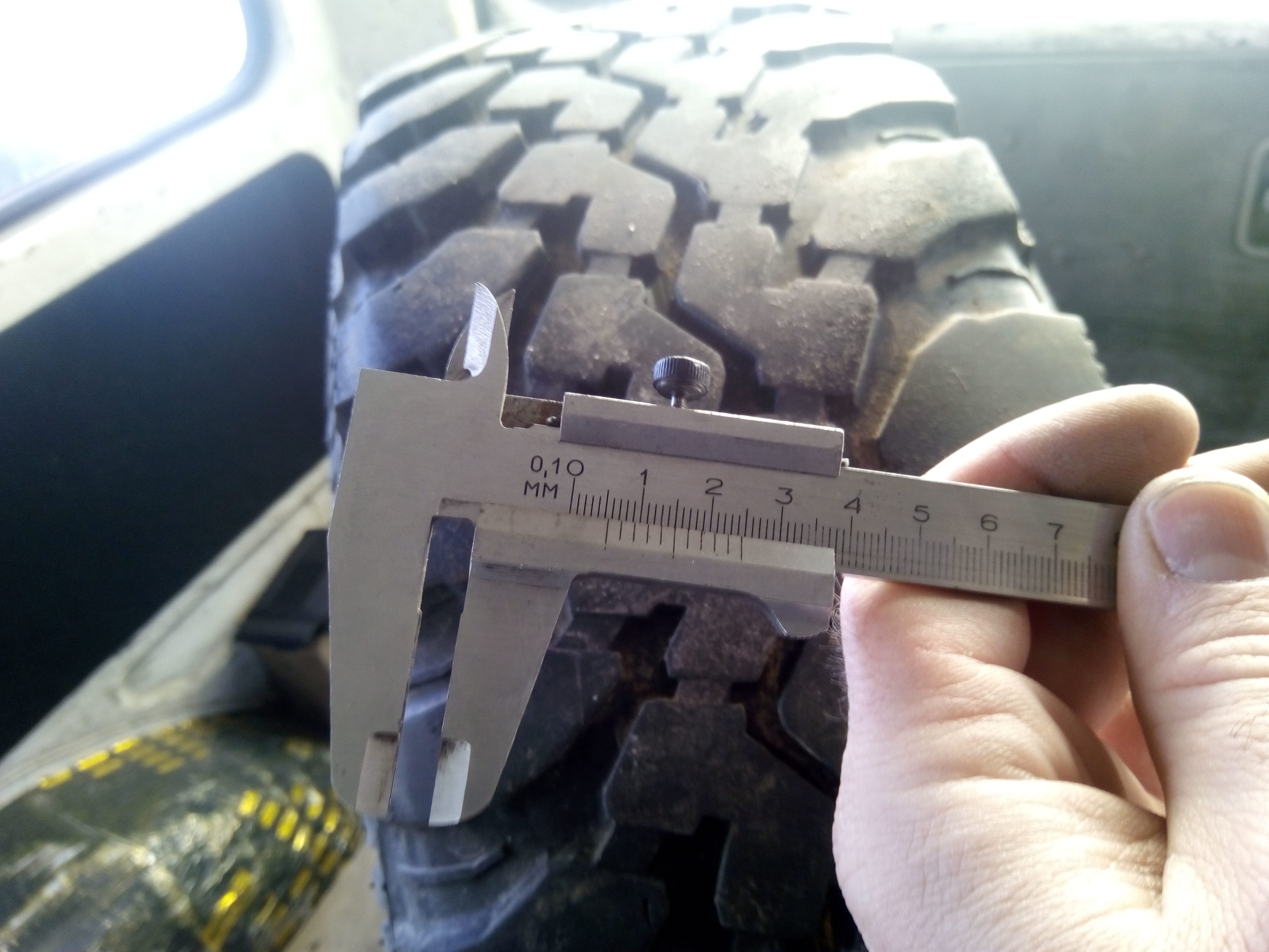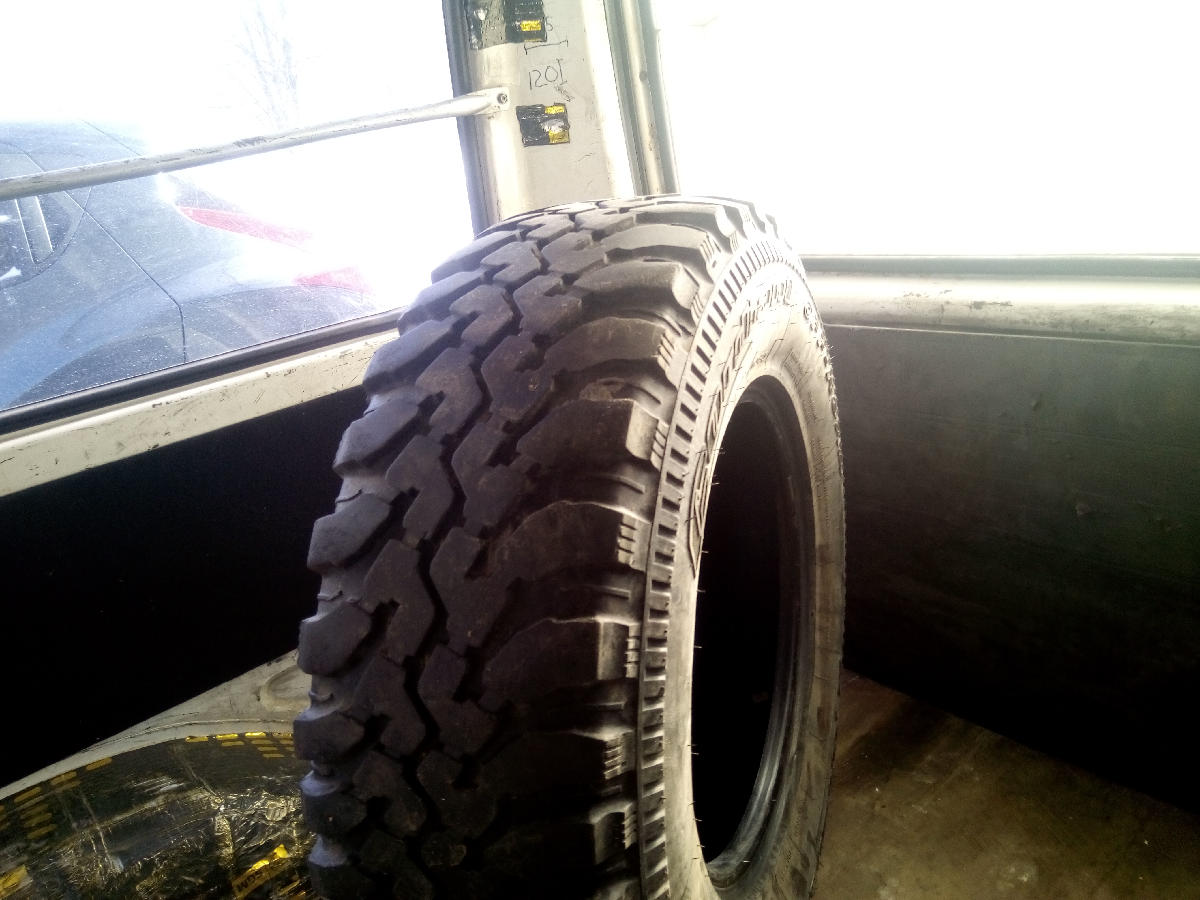 Боковых проколов и порезов нет, протектор целый, изношен неравномерно. Остаток 8-5 мм. Может кому на запаску пригодится.