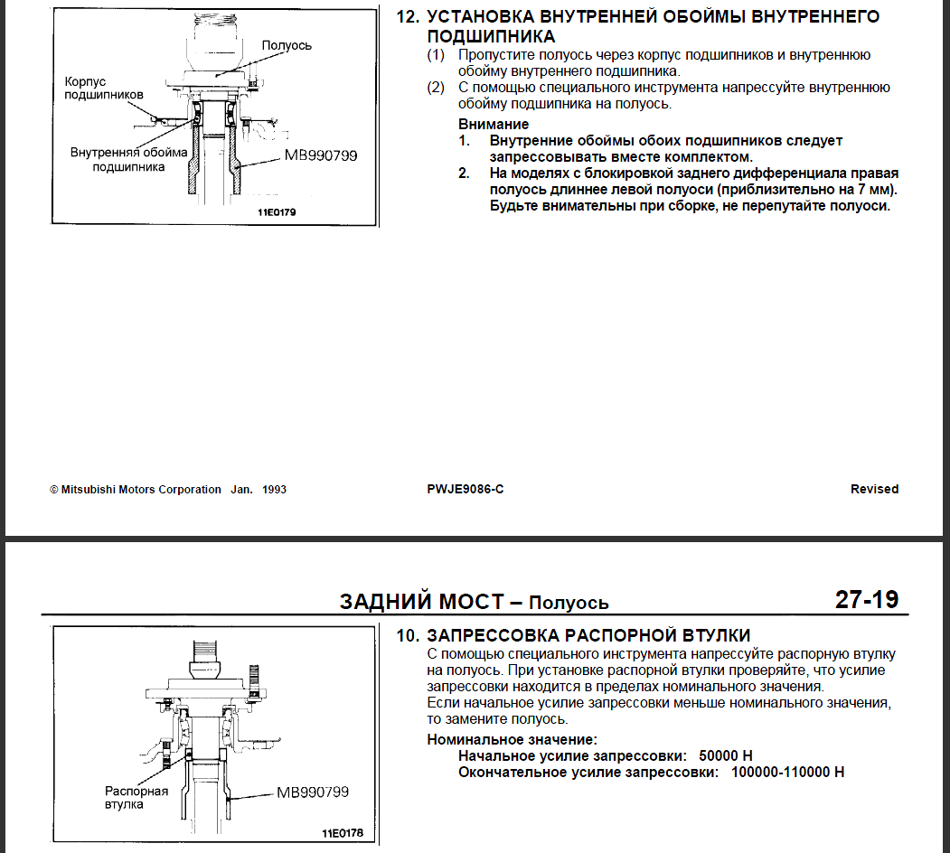 Если при напрессовке подшипника вместе с корпусом на полуось наружняя обойма не зажимается роликами, то зачем-же японцы регламентируют усилие напрессовки распорной втулки??