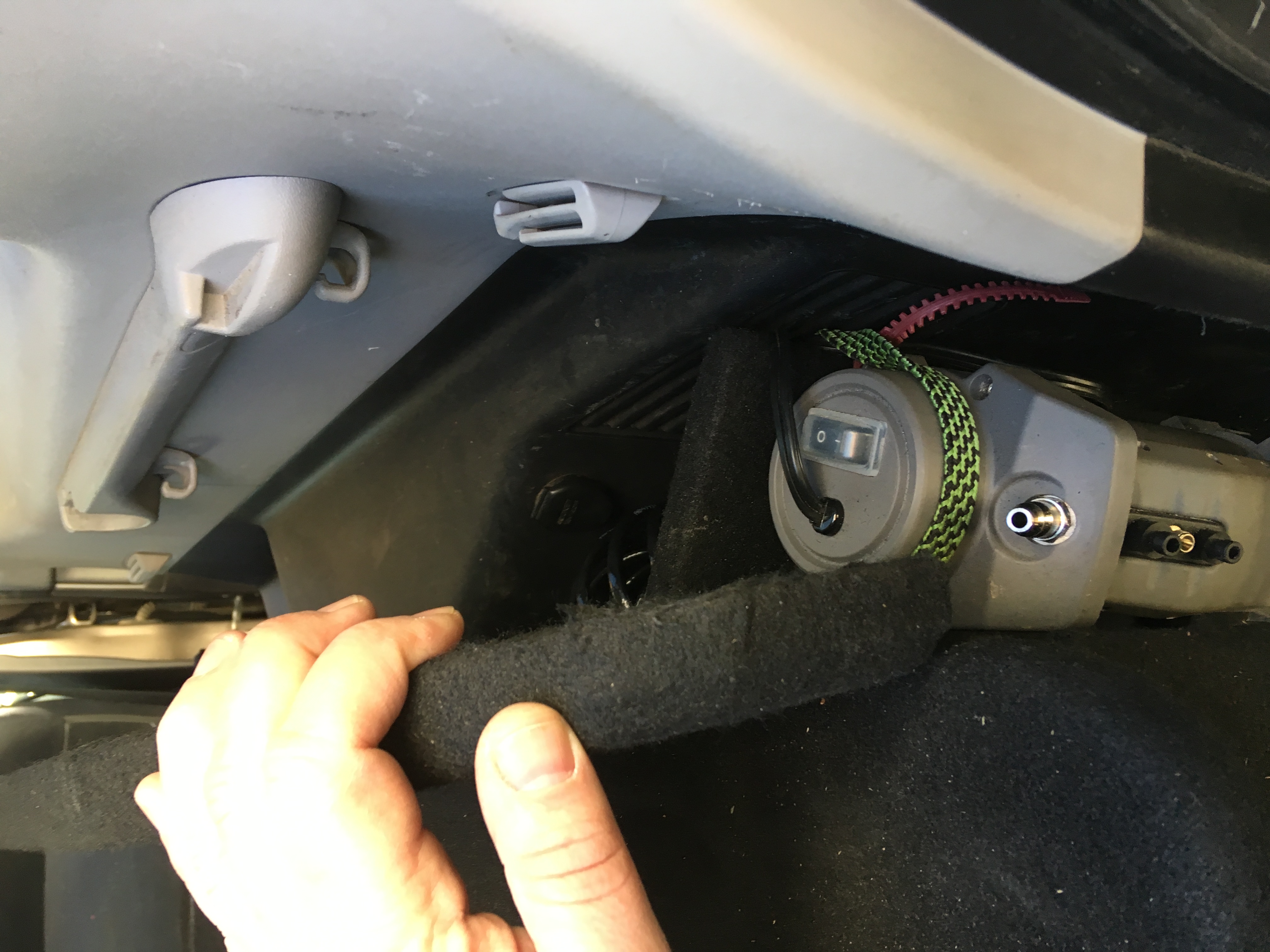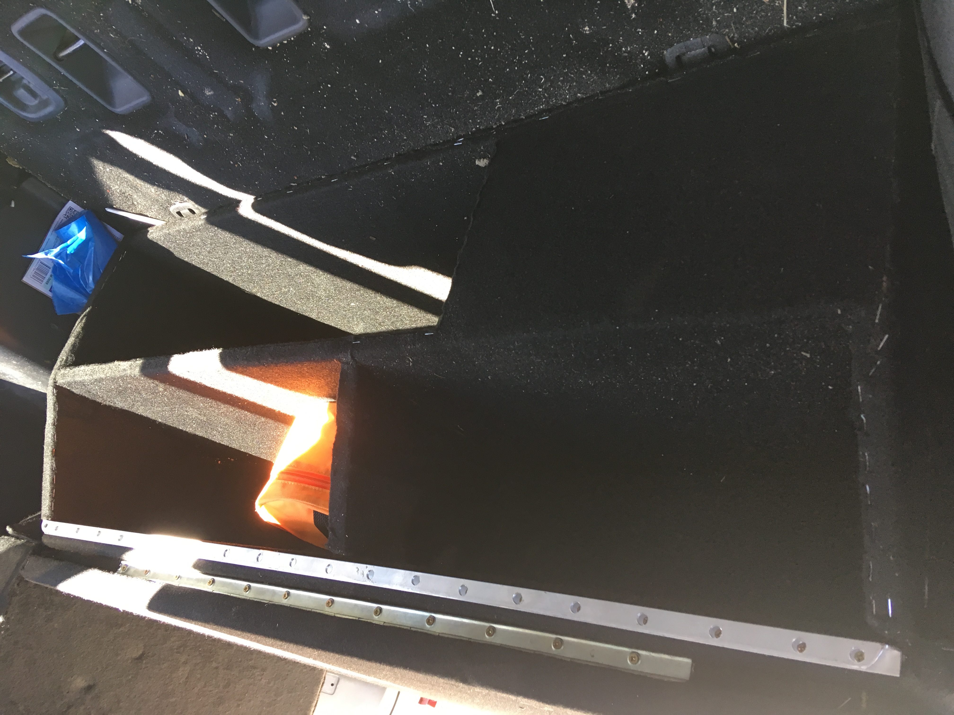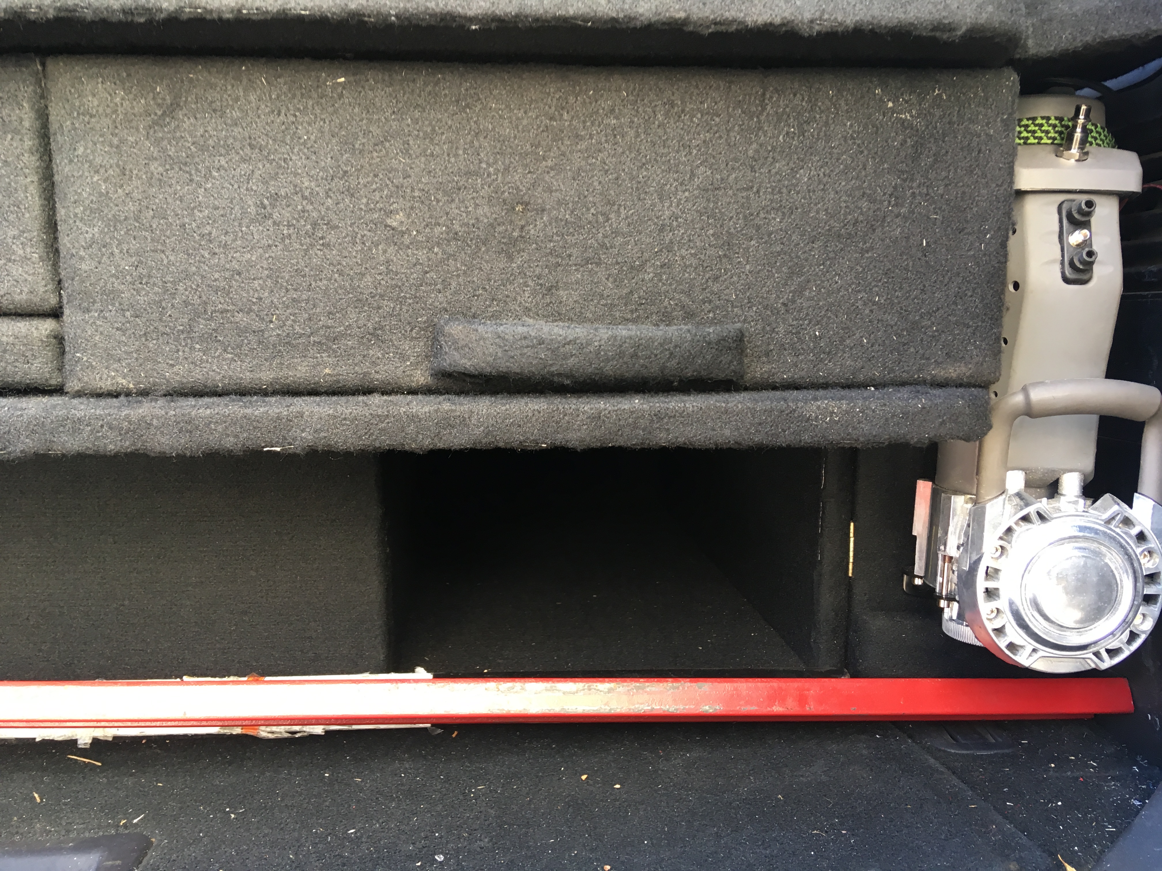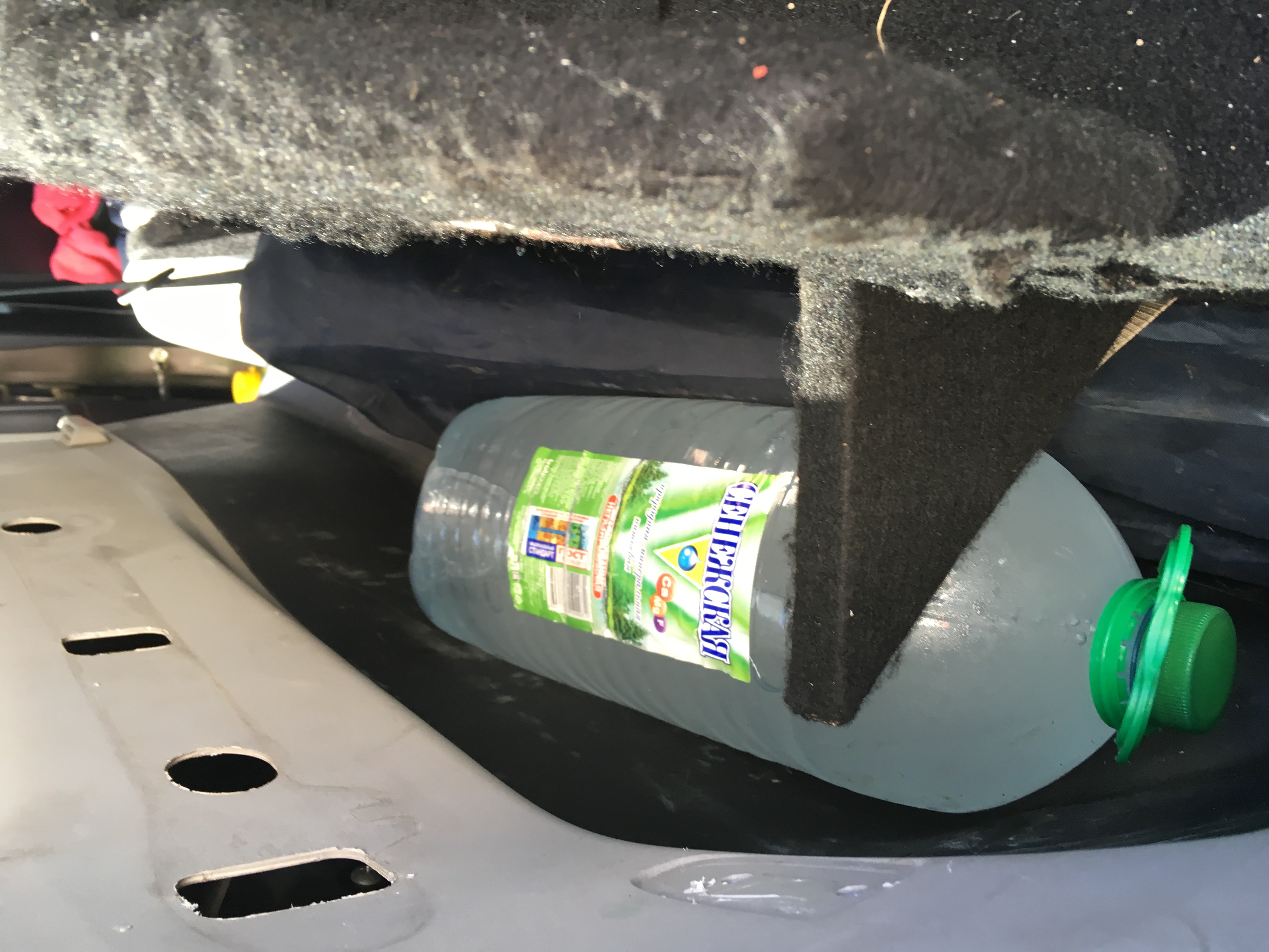 По бокам 2 отсеков, в левый влезает пара 5ти литровых бутылок воды, у меня там лежит раскладной стол и фляга 5 л, справа компрессор, питание выведено на АКБ, за ним отсек для шланга.