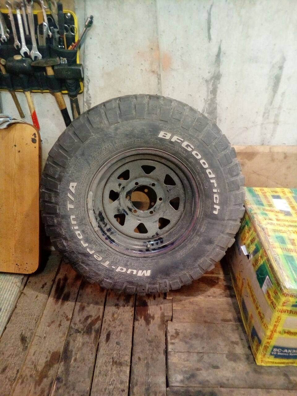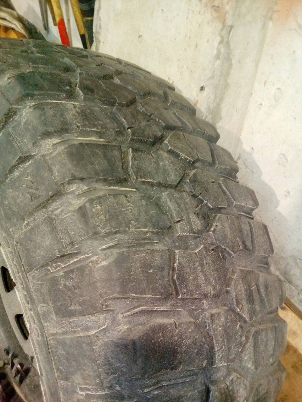 1 штука БФГ КМ2 285/75/16 на железке с вылетом 0 остаток так же протектора 5-6 мм