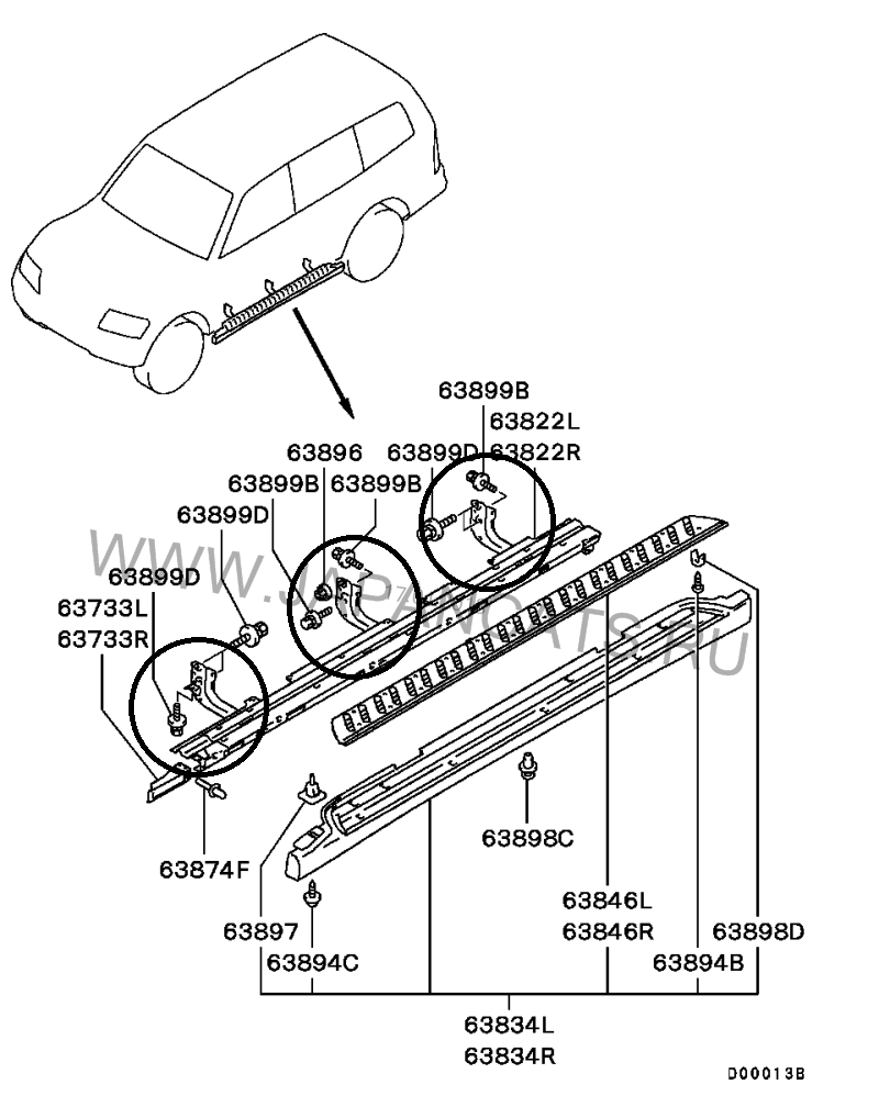 Поиск кронштейнов подножек на Монтеро 3, 20003, 5 дверей