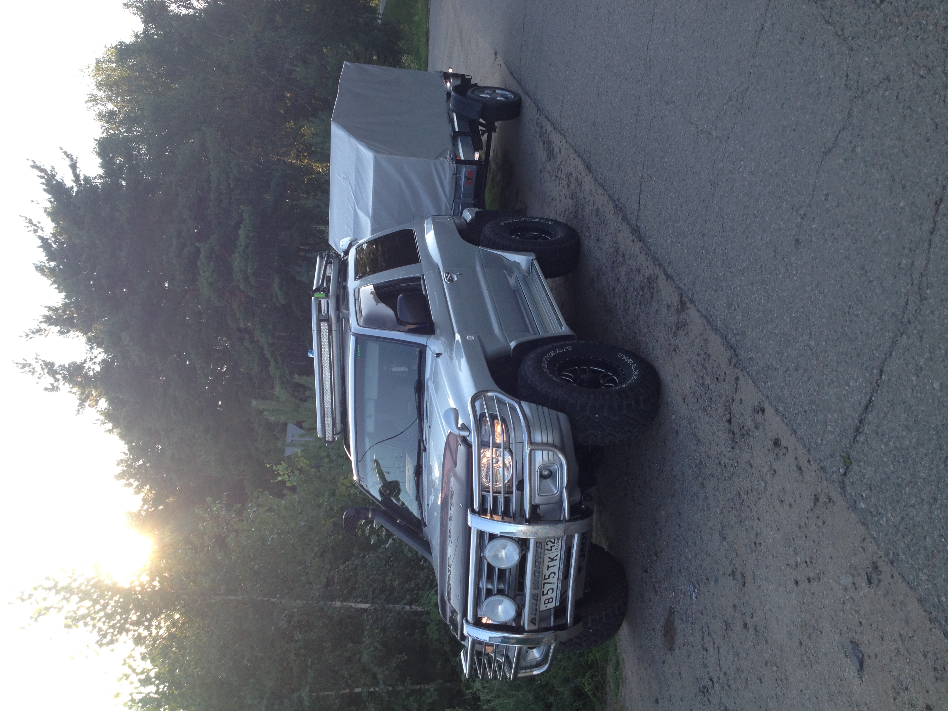 Полный багажник шмурдяка (багадник кстати в коротышке мал, много не наложишь) на крыше примерно 60кг. и прицеп с квадром или снежиком (зависит от времени года;)