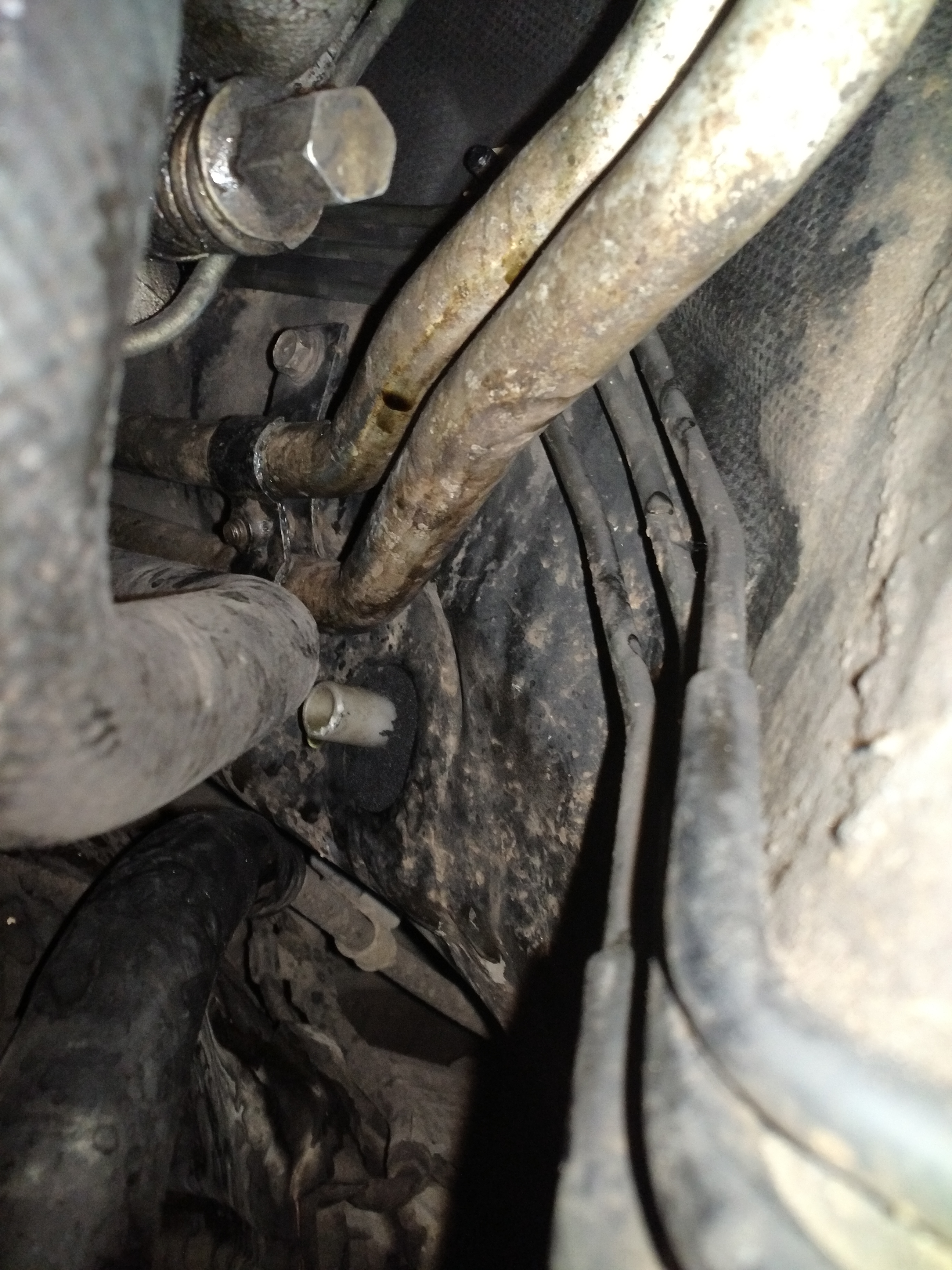 Над педалью газа немного влажно, однако я полагал что это натекло когда я подсоединял трубки с фризом и немного давануло жижи под торпеду.
